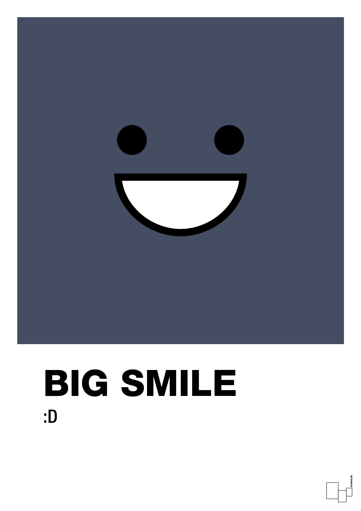 Vil du have et motiv, der helt bogstaveligt smiler til dig hver dag? Denne grafiske smiley plakat er designet til at løfte stemningen i rummet med sit store, enkle grin og rene, skarpe linjer. Et ikonisk ansigt, en tydelig typografi med teksten “BIG SMILE” og et minimalistisk layout gør plakaten både humoristisk og stilren på én gang.