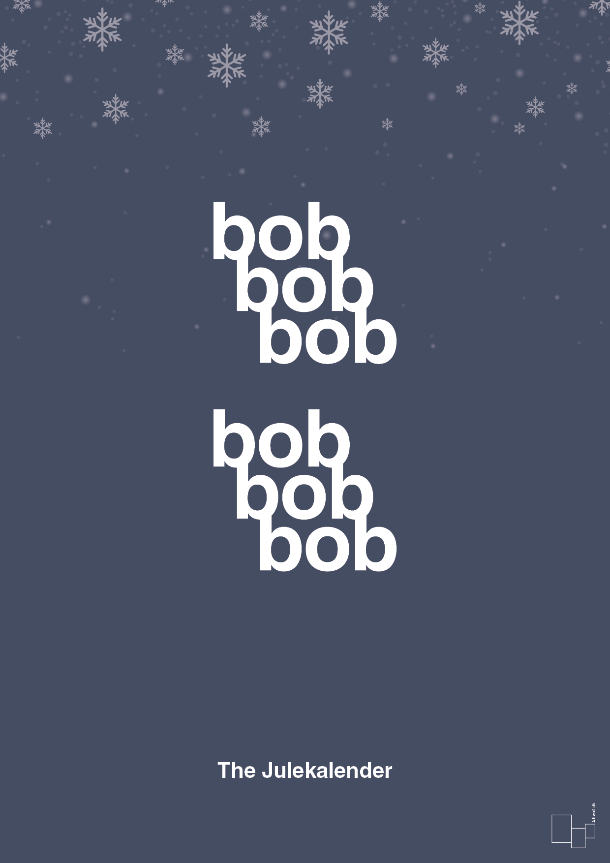 Denne grafiske juleplakat er skabt til dig, der elsker klassisk dansk jule-tv og vil have et stilrent nik til The Julekalender hængende på væggen. Med det ikoniske “bob bob bob”-citat sat i centrum og omgivet af en rolig snefyldt nattehimmel, får du en juleplakat, der både er genkendelig, humoristisk og flot at se på – også når julepynten ellers let kan blive lidt for meget.