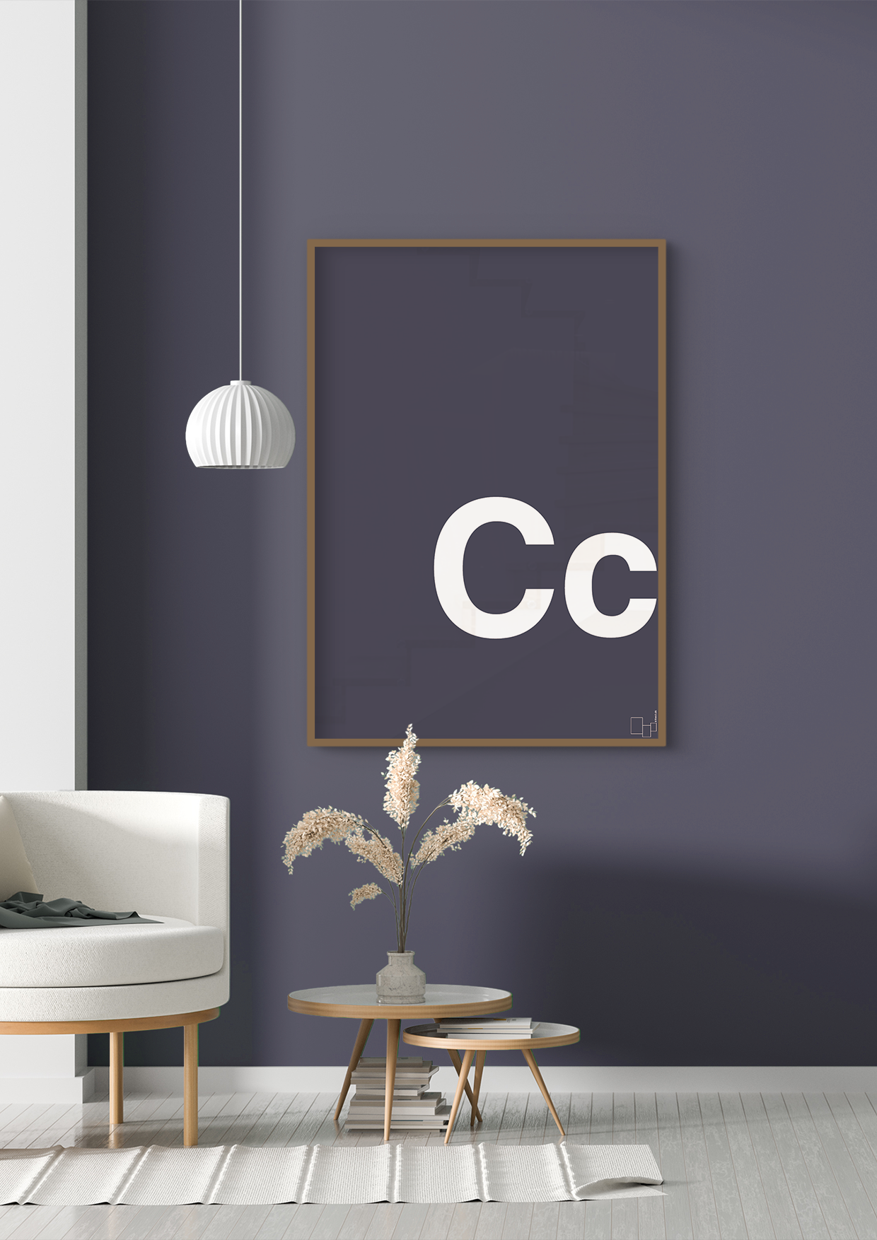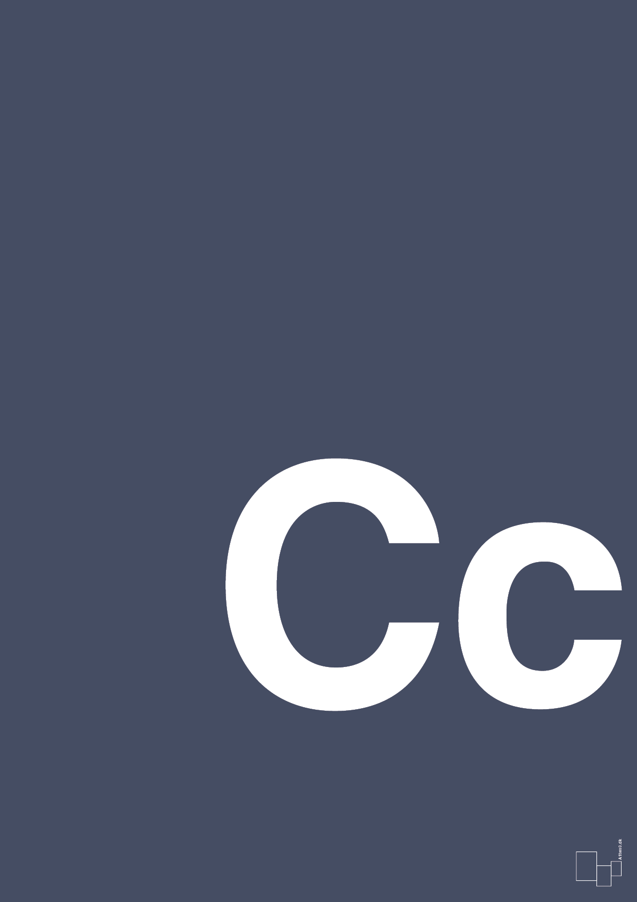 Det markante C i både versal og minuskel gør det let for barnet at genkende bogstavet og øve udtale, lyde og tidlig læsning. Det typografiske fokus og de rene linjer giver et roligt, grafisk udtryk, som både børn og voksne kan lide. Hæng den ved puslepladsen, ved sengen eller over skrivebordet, hvor bogstavet kan blive en naturlig del af hverdagen og de små læringsøjeblikke.