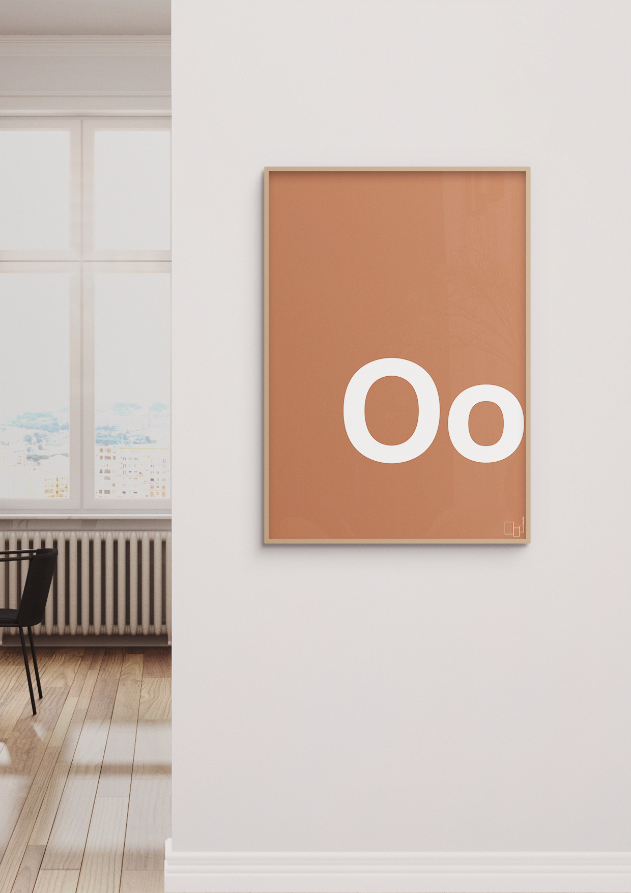 Denne enkle og grafisk stærke bogstavplakat med stort og lille “O” er perfekt til dig, der vil kombinere personlig indretning med et rent, skandinavisk udtryk. Plakaten fremhæver bogstavets runde former i et minimalistisk layout, hvor typografien får lov at være det bærende visuelt element.
