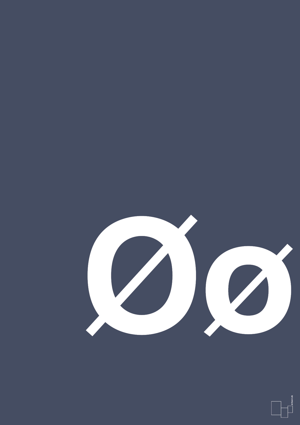 Denne grafiske bogstavplakat med stort og lille Ø er skabt til dig, der vil indrette med enkel, nordisk typografi og samtidig give rummet et personligt præg. Det markante Ø fylder nederste hjørne og skaber et stærkt visuelt fokus, mens det lille ø understreger den legende og typografiske stil, som kendetegner A1two3.