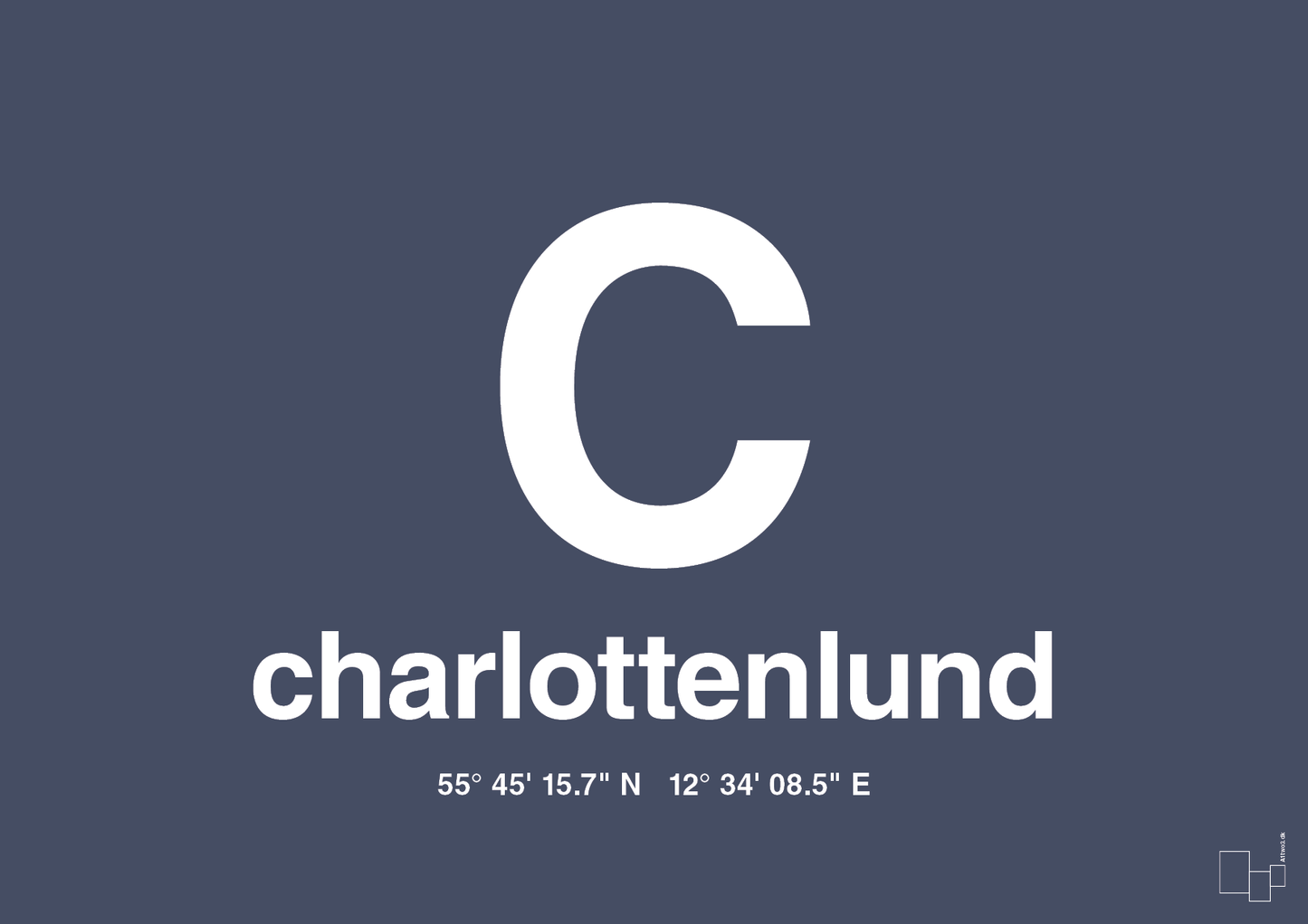 Denne minimalistiske byplakat hylder Charlottenlund med et markant grafisk udtryk. Det store, dominerende “C” og den klare typografi gør plakaten til et moderne designobjekt, der både fungerer som wallart og som personlig markør for dit tilhørsforhold til byen.