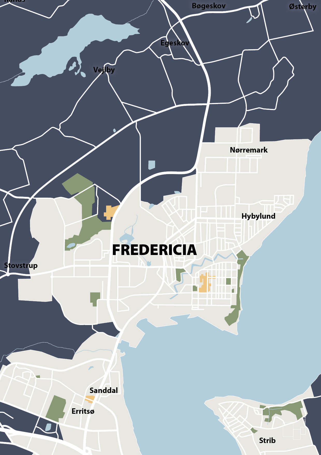 Hæng den i stuen, entreen eller hjemmekontoret som personlig vægdekoration, eller giv den som gave til studenter, tilflyttere eller dem, der er flyttet væk men stadig har hjertet i Fredericia.