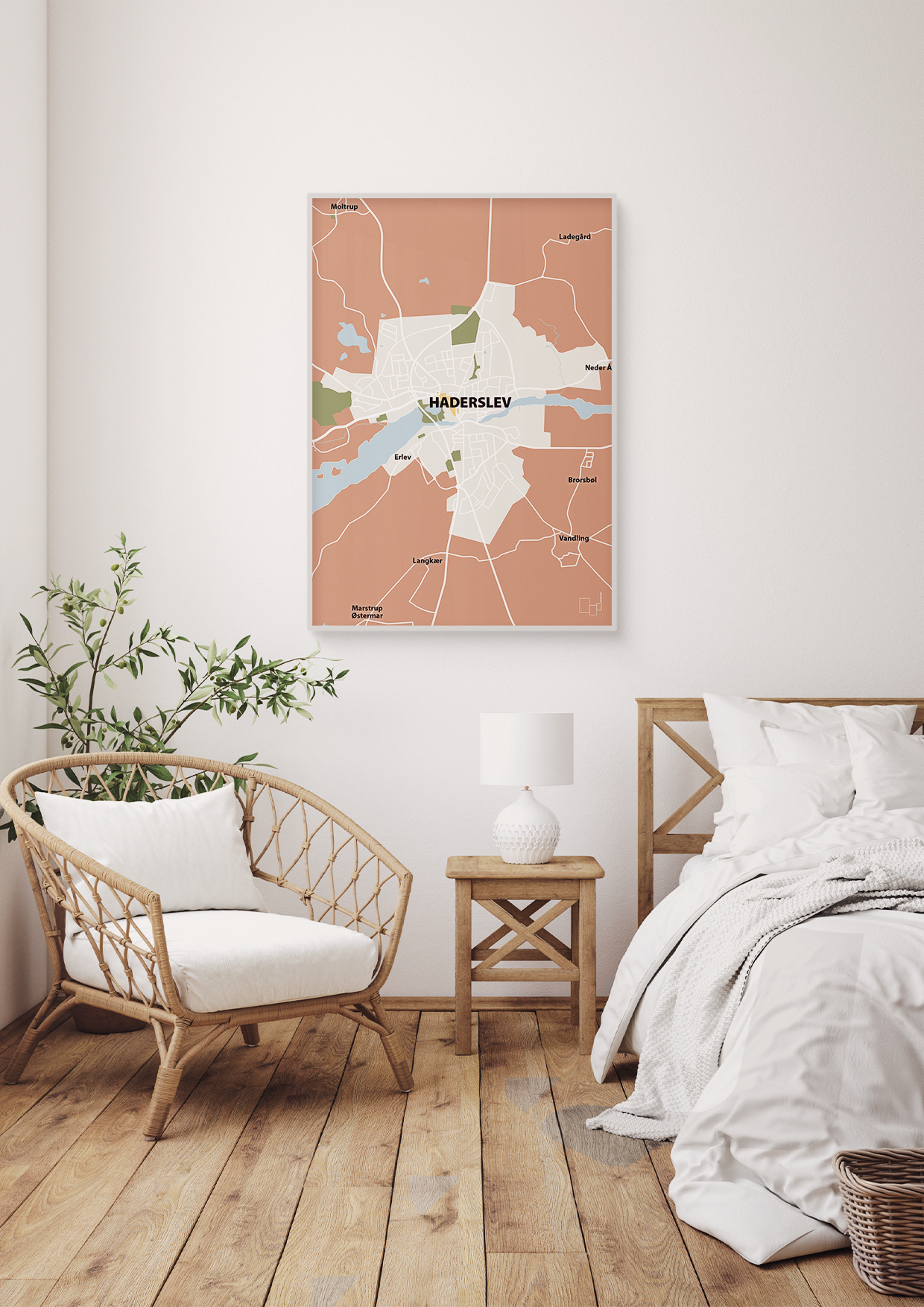 Om du er vokset op ved Haderslev Dam, har minder fra gågaden eller blot elsker Sønderjylland, giver denne kortplakat et moderne og urbant twist til din boligindretning. Den egner sig perfekt som:
