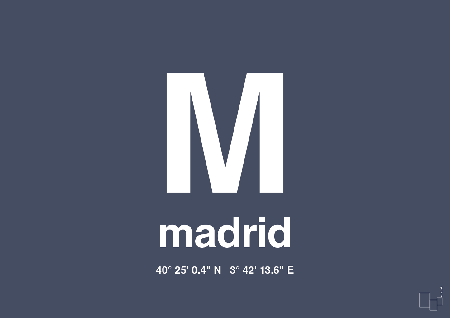 Denne grafiske byplakat med madrid og byens præcise koordinater er skabt til dig, der vil have storbyviben ind i indretningen uden at gå på kompromis med det enkle, skandinaviske udtryk. Det markante bogstav “M” og den tydelige typografi gør plakaten til et stærkt statement, der hylder Spaniens pulserende hovedstad på en minimalistisk og stilren måde.