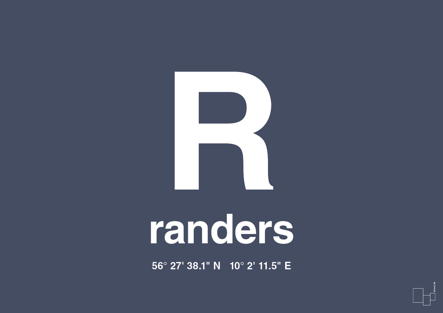 Denne stilrene Randers plakat er til dig, der vil have byen helt tæt på – uden støj og uden unødige detaljer. Ét stort, markant “R” dominerer motivet, flankeret af bynavnet “randers” og de præcise GPS-koordinater. Resultatet er en enkel og grafisk byplakat, der fungerer som et diskret, men personligt statement i din boligindretning.