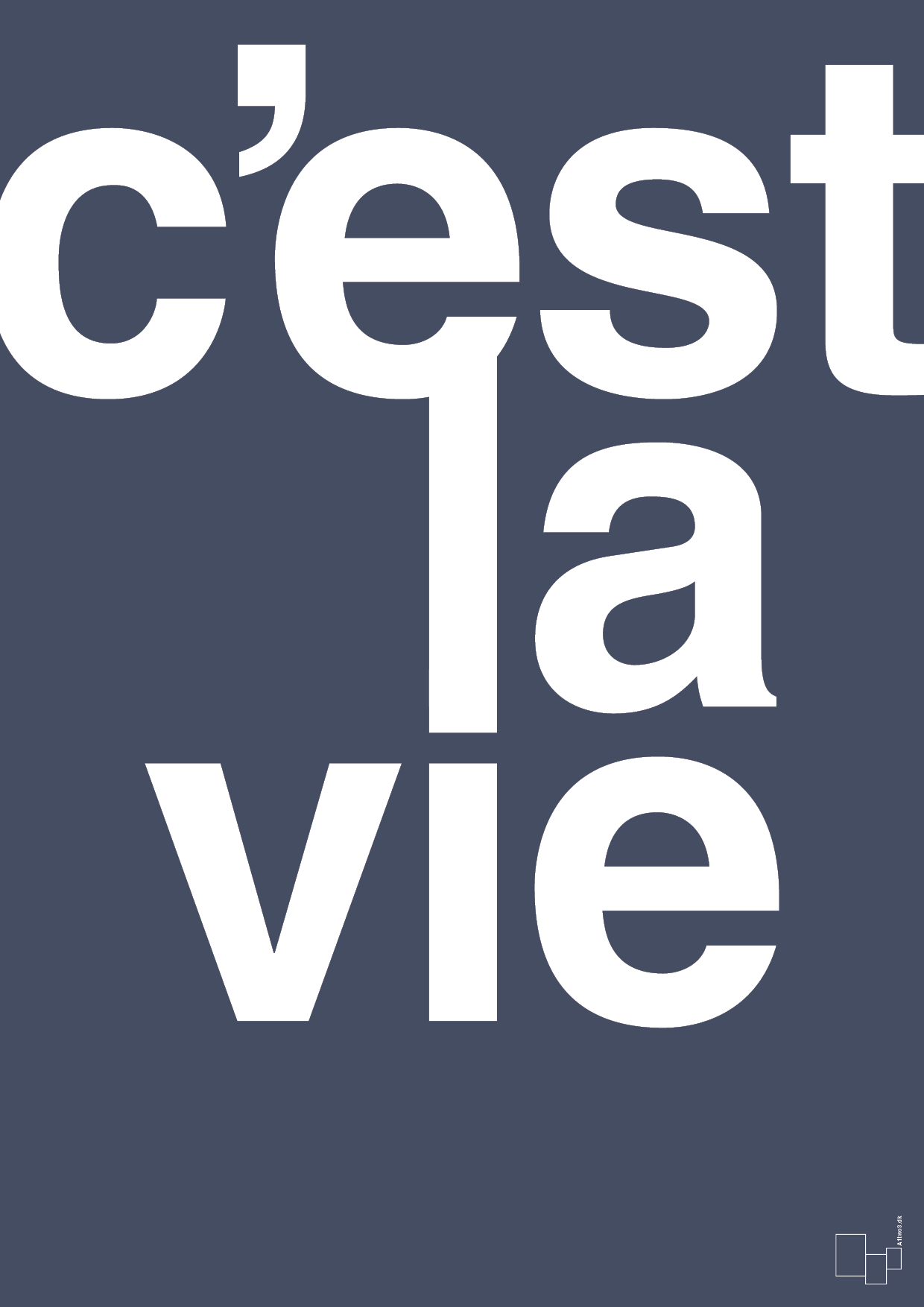 Alle plakater fra A1two3 er dansk design og produktion, trykt på kvalitetskunstpapir med professionel printteknik – samme høje standard som kunstplakater fra gallerier og museer. Motivet fås i 25 forskellige farver og mindst 13 størrelser, så du nemt kan tilpasse din c’est la vie plakat til både billedvæg, solo-hængning og lige præcis den væg, du vil give lidt ekstra liv.
