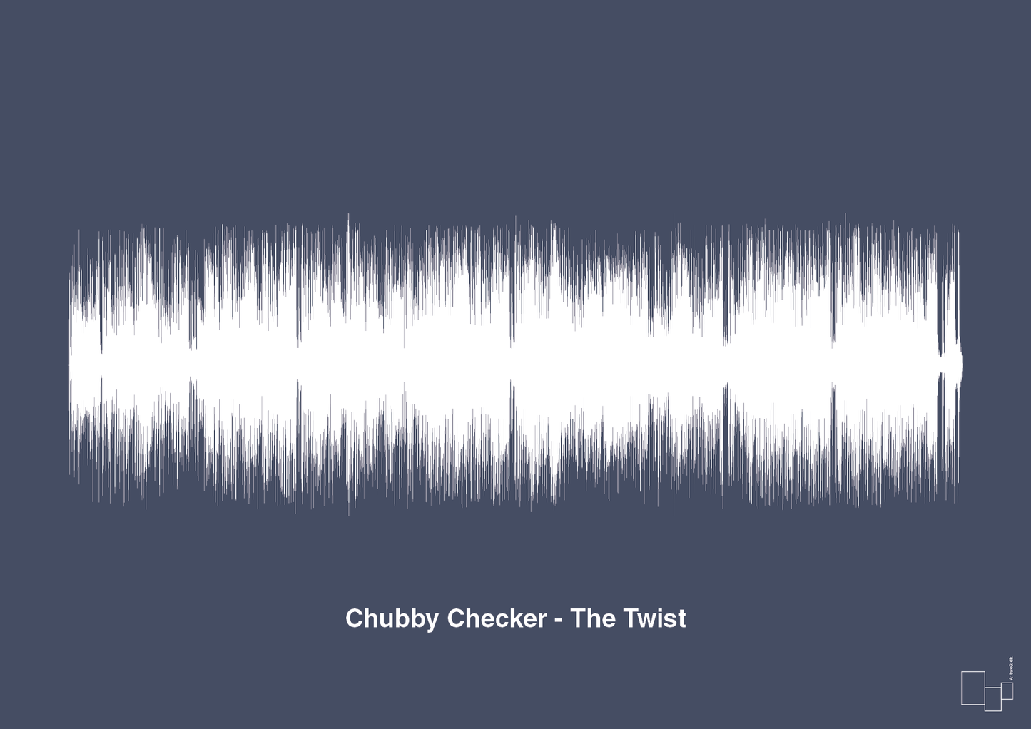 Denne stilrene musikplakat fra A1two3 fortolker Chubby Checkers legendariske hit “The Twist” som en skarp, grafisk lydbølge. Den tætte rytme og energiske beat er oversat til et horisontalt bånd af pulserende peaks og dale, der giver en dynamisk, nærmest hypnotisk effekt på væggen. En perfekt kombination af retro musikreferencer og moderne, minimalistisk plakatkunst.