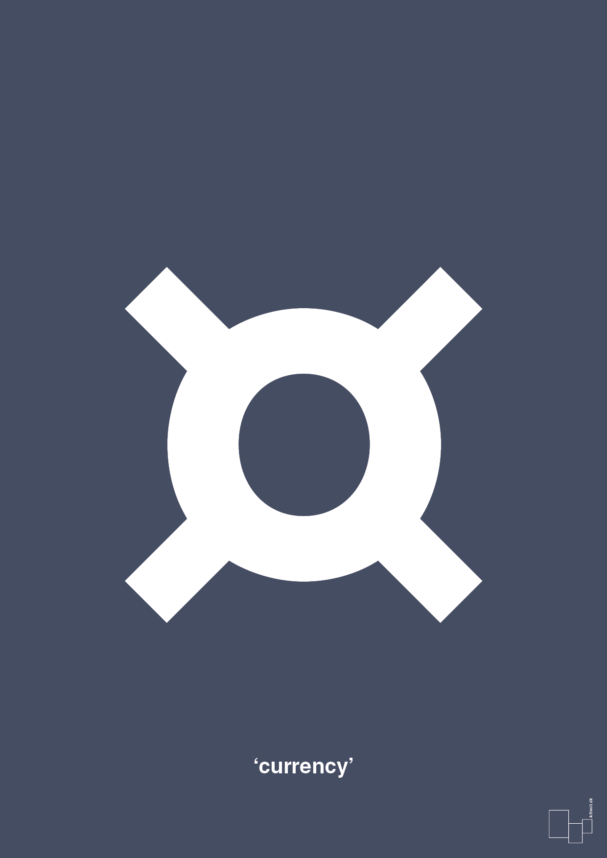 Denne plakat fortolker det klassiske valutategn på en ny, grafisk og skandinavisk måde. Et enkelt, ikonisk symbol fylder fladen og skaber et stærkt visuelt fokuspunkt, der leger med idéen om penge, værdi og økonomi – uden at fylde rummet med støj. Perfekt til dig, der elsker ren typografi, enkel formgivning og urbant design.