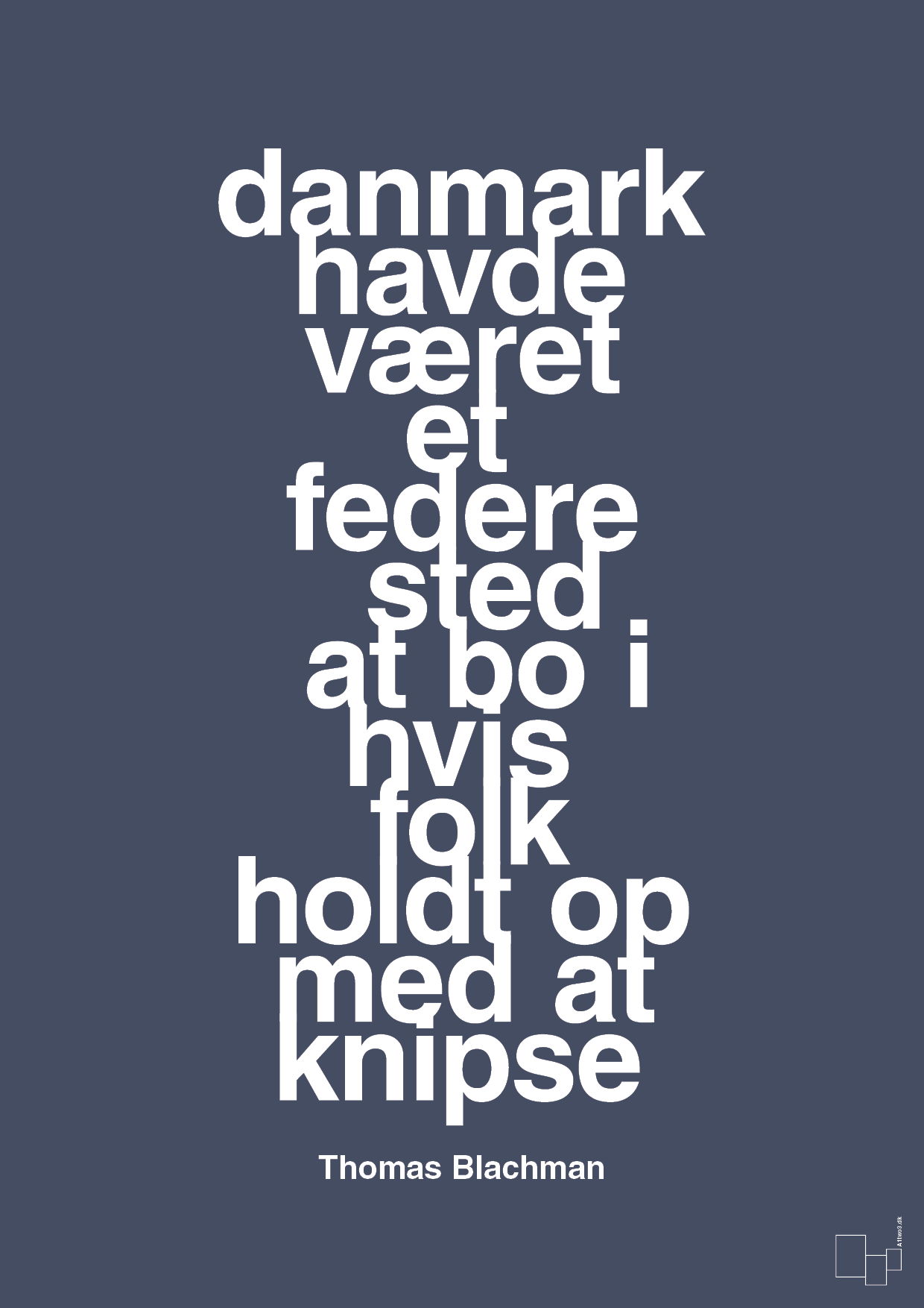 Denne typografiske citatplakat er til dig, der elsker skarpe punchlines, jazzet attitude og et ærligt reality-check til den danske hverdag. Med det markante citat “danmark havde været et federe sted at bo i hvis folk holdt op med at knipse” sat op i et stramt, vertikalt tekstlayout får du en vægdekoration, der både får folk til at grine og tænke sig om en ekstra gang.