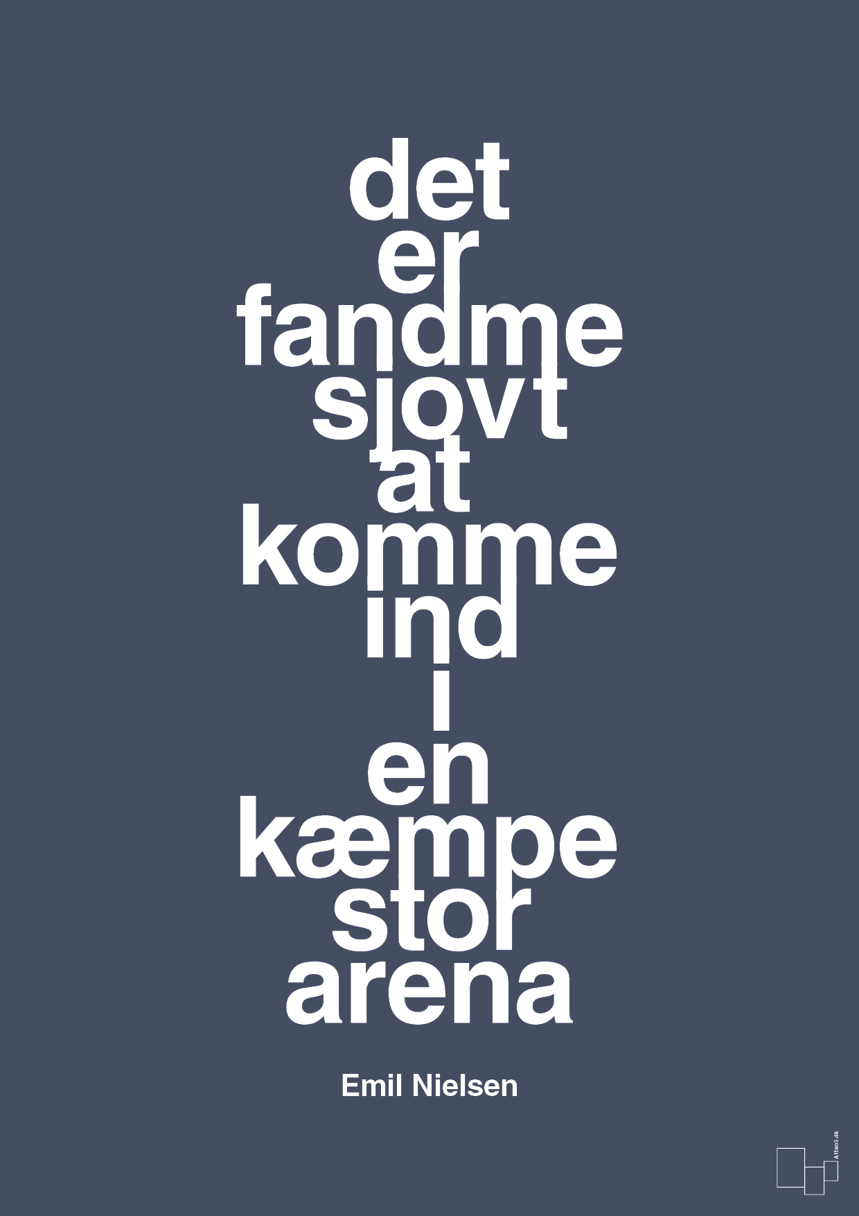 Denne typografiske sportsplakat er til dig, der elsker håndbold, arena-stemning og den helt særlige følelse af at træde ind til et hav af mennesker, larm og forventning. Citatet stammer fra håndboldmålmanden Emil Nielsen og rammer præcist den rå, ærlige og humoristiske side af elitesport – uden filter.