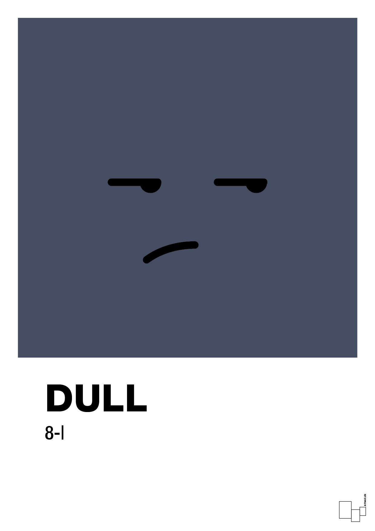 Denne typografiske smiley plakat forvandler følelsen af mild irritation og stille resignation til stilren vægkunst. Med sit enkle, grafiske ansigt og ordet “DULL” i markant typografi rammer motivet præcist den dér trætte hverdagstone – og gør den til et humoristisk designstatement i hjemmet.