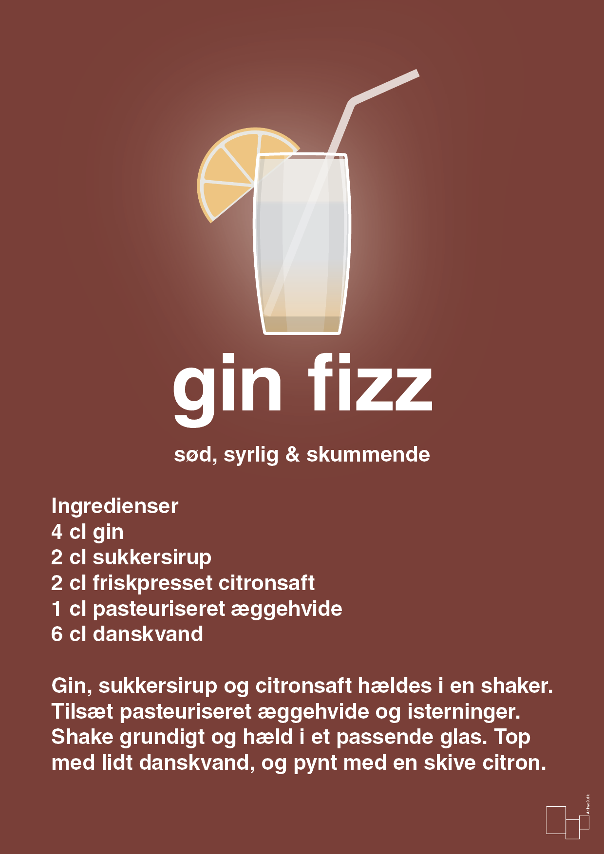 Cocktail plakat med opskriften på Gin Fizz - overraskende uskyldig at se på; men en drinks som overrasker
