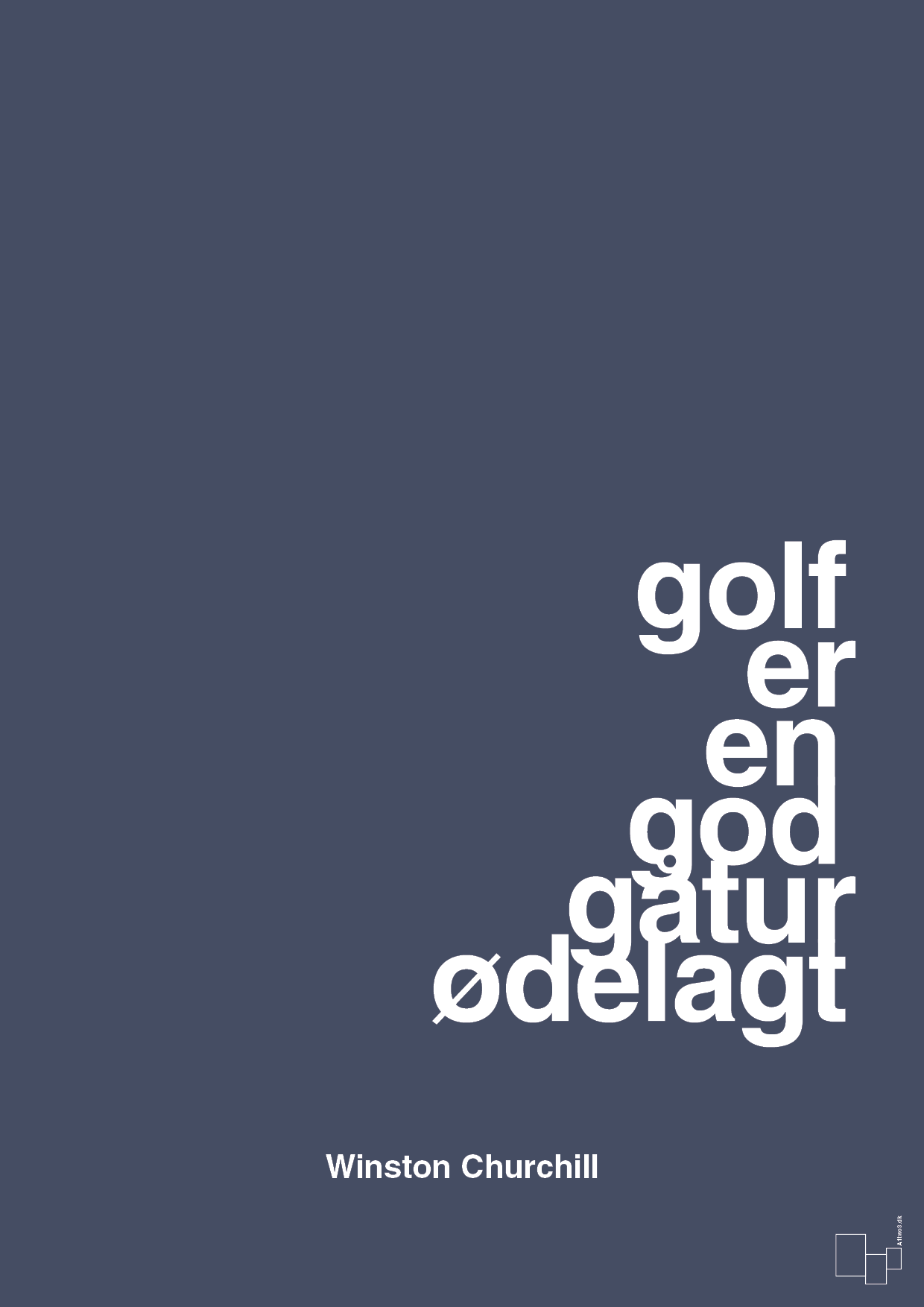 Denne stilrene golf plakat samler alt, hvad golfelskere (og deres familier) kender: kærligheden til sporten og den milde frustration over de mange slag. Citatet “golf er en god gåtur ødelagt” er typografisk opstillet som en kompakt, grafisk blok i nederste hjørne, så ordene nærmest vokser op fra bunden som et humoristisk monument over golfens absurditet.