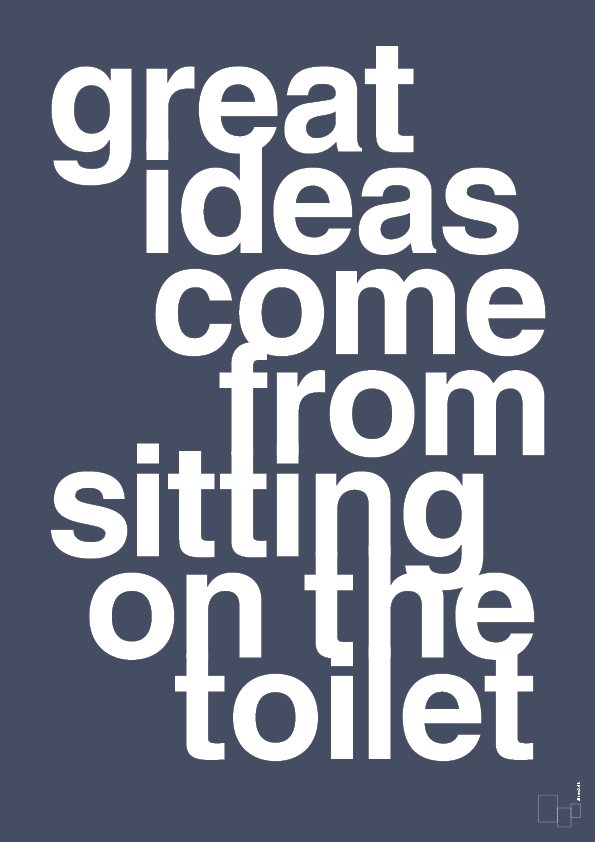 Denne plakat er skabt til dig, der elsker humor, grafisk design og små, skæve sandheder om hverdagen. Med det selvironiske citat “great ideas come from sitting on the toilet” bliver badeværelset pludselig det mest kreative rum i hjemmet. Den store, markante typografi fylder hele fladen og giver et legende, urbant udtryk, der trækker på klassisk skandinavisk minimalisme.