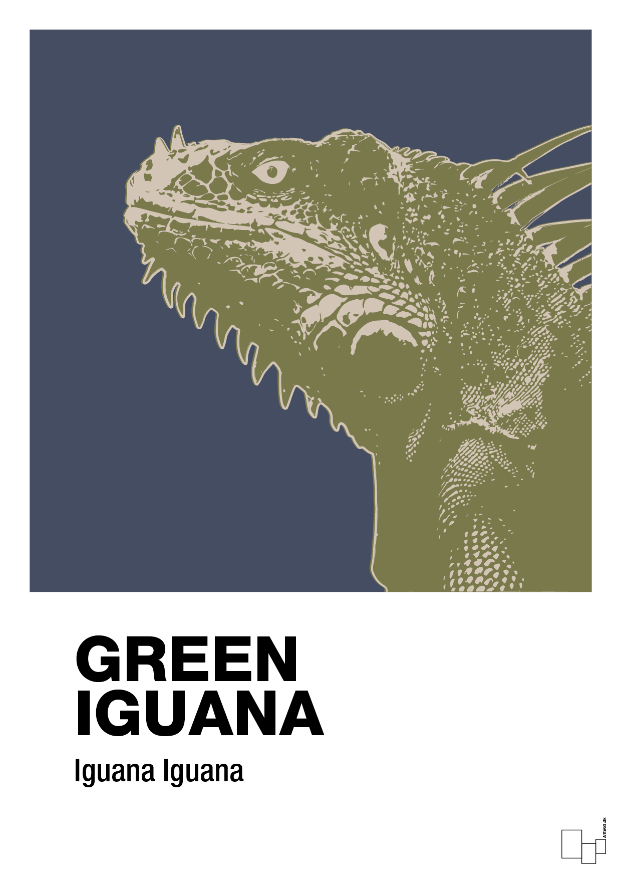 Denne grafiske plakat med en grøn leguan fanger det fascinerende krybdyr i et tæt, dramatisk portræt. Detaljerede skæl, pigge og det rolige, vågne blik er fremhævet i et skarpt, stiliseret udtryk, der gør leguanen til et markant kunstmotiv i rummet. Motivet er kombineret med tydelig typografi og latinsk artsnavn, så plakaten både fungerer som moderne vægkunst og som et diskret, dekorativt fakta-element.