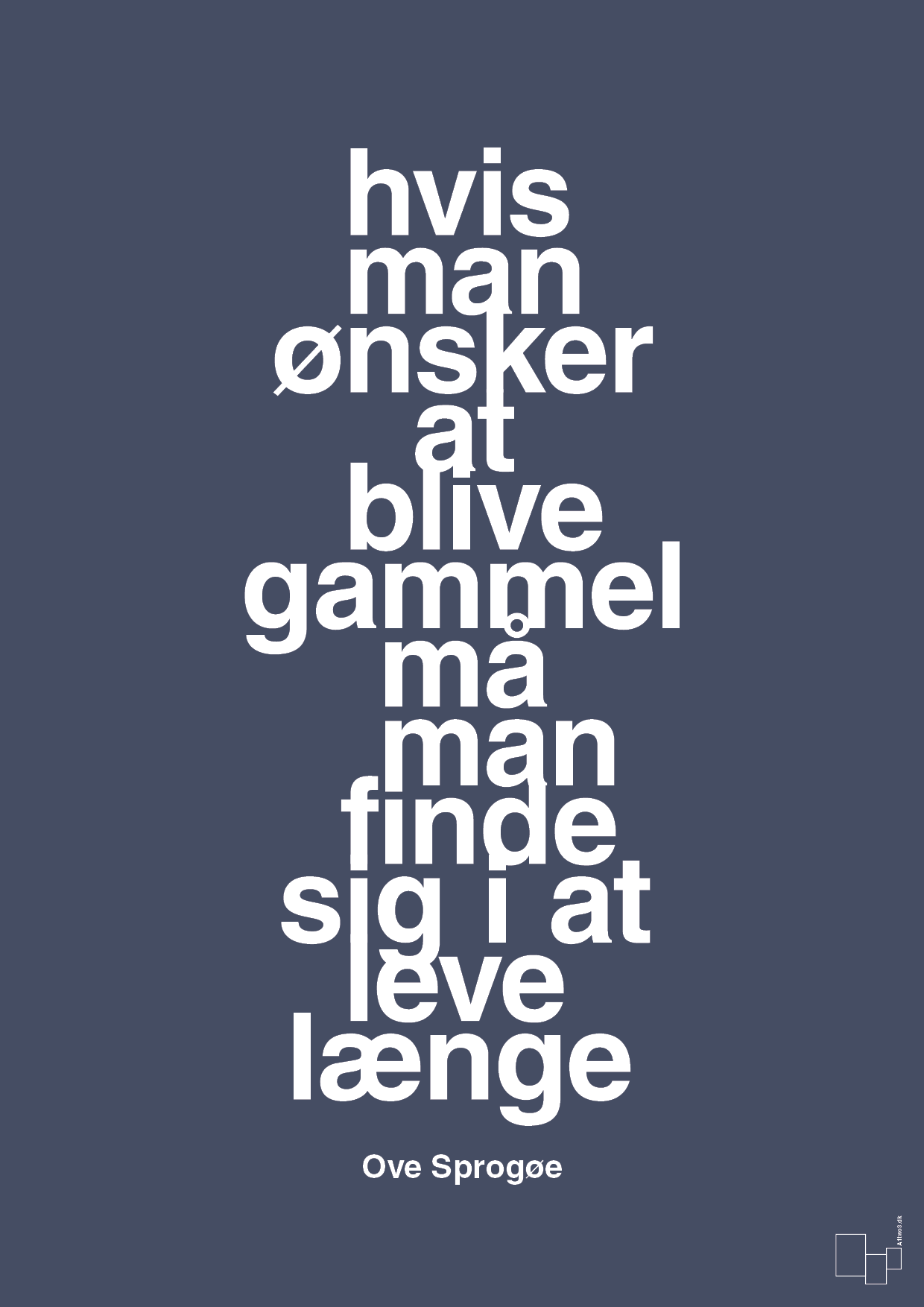 Denne citatplakat med ordene “hvis man ønsker at blive gammel må man finde sig i at leve længe” hylder den tørre, underspillede humor, mange forbinder med dansk kultur. Citatet stammer fra skuespilleren Ove Sprogøe og er perfekt til dig, der elsker både klassiske danske film og skarpe, livskloge bemærkninger.