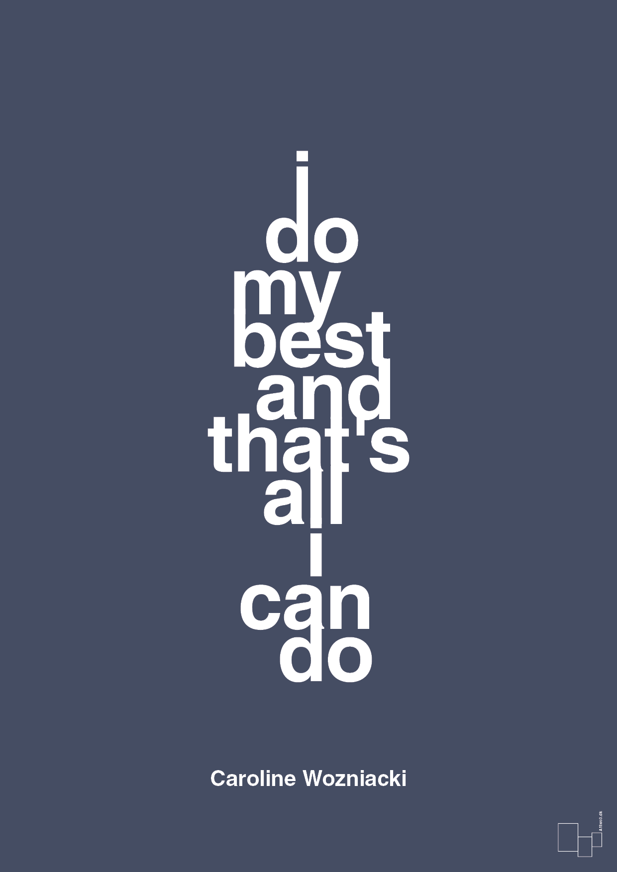 Denne typografiske citatplakat med teksten “I do my best and that’s all I can do” er en stilren påmindelse om, at det vigtigste er at give sit bedste. Ordene er hentet fra en af Danmarks mest kendte sportsprofiler, og plakaten emmer af vilje, fokus og mental styrke – perfekt til dig, der elsker sport, træning og personlig udvikling.