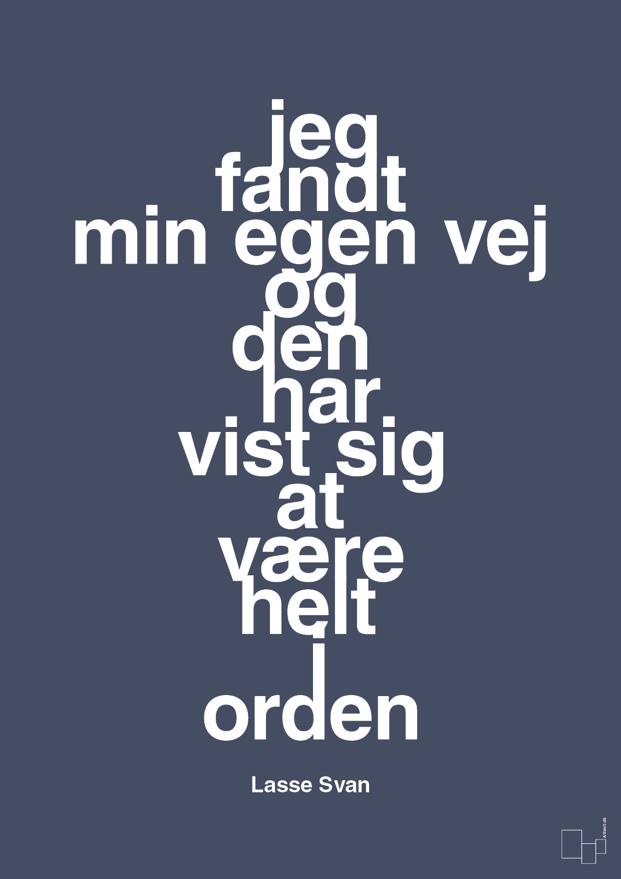 Denne grafiske citatplakat med ordene “jeg fandt min egen vej og den har vist sig at være helt i orden” er til dig, der tør stå ved dine valg. Plakaten er baseret på et citat af den danske håndboldspiller Lasse Svan og er skabt til at minde dig om, at din egen sti i livet er lige dér, hvor styrken ligger.