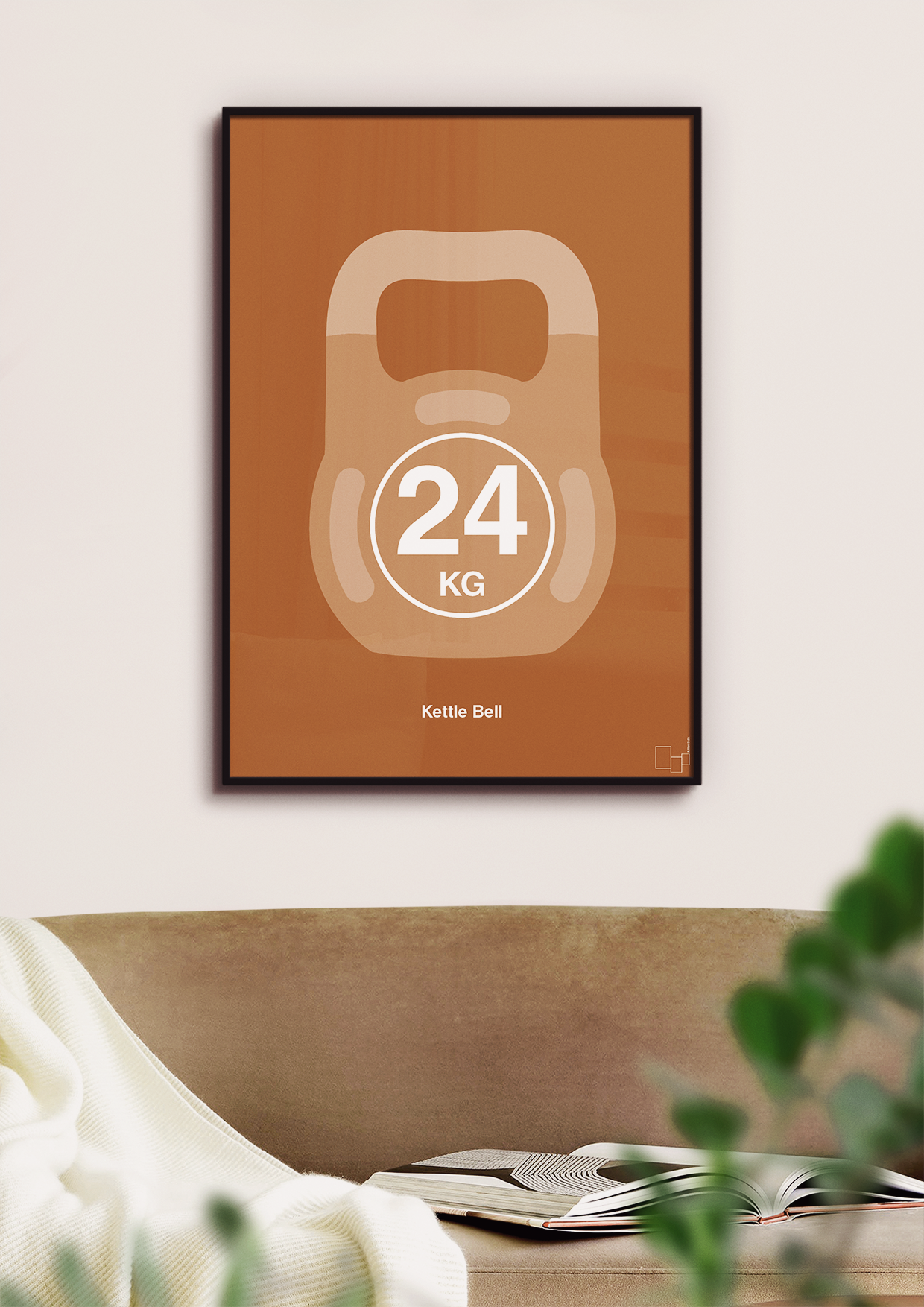 Denne grafiske kettlebell plakat hylder den klassiske 24 kg vægt – et ikonisk træningsredskab for dig, der elsker funktionel træning, crossfit og styrketræning. Med sit enkle, typografiske fokus på tallet “24” og den rene cirkelkomposition, får du en moderne fitness plakat, der både motiverer og matcher et stilrent hjem.