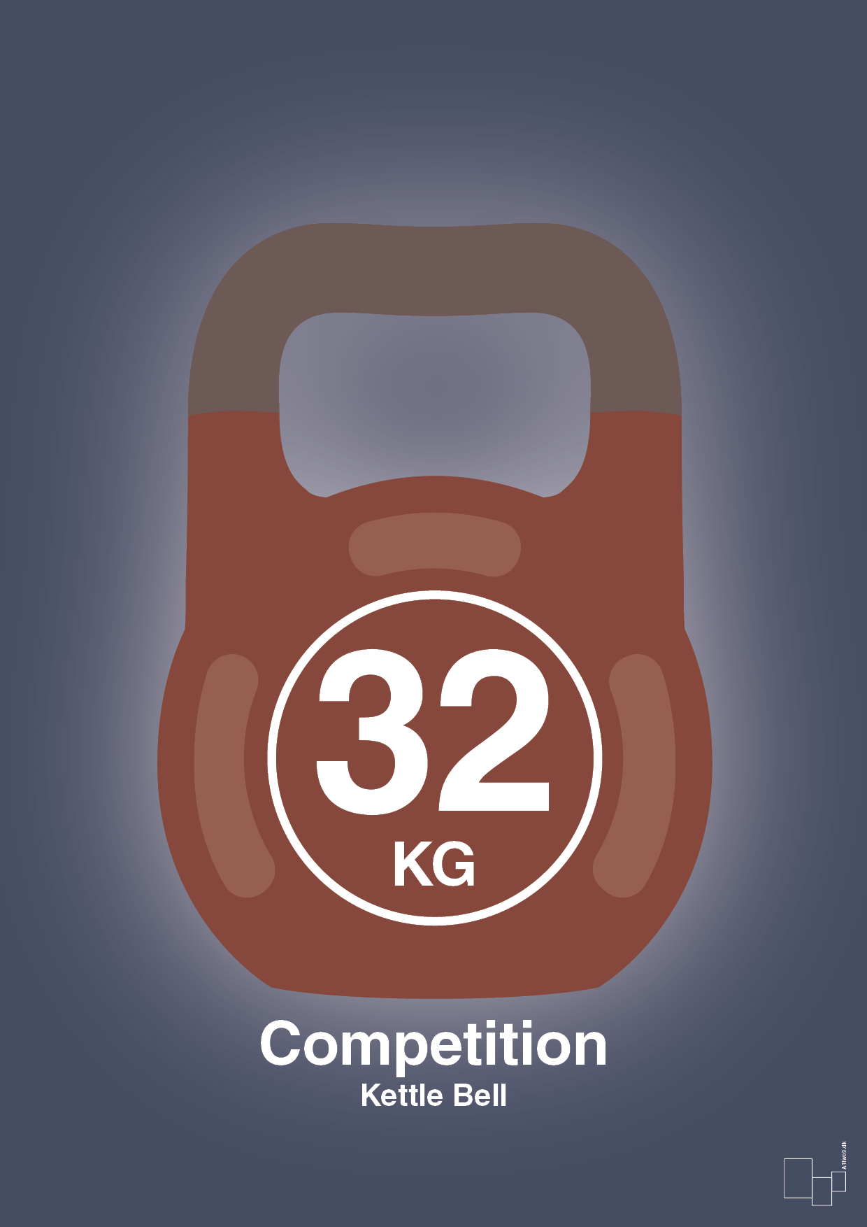 Denne grafiske kettlebell plakat er til dig, der elsker styrketræning og kender følelsen af en tung 32 kg competition kettlebell. Det enkle, ikoniske motiv med den markante vægtangivelse i centrum giver et visuelt spark til væggen og sender et klart signal om dedikation, disciplin og træningsglæde.