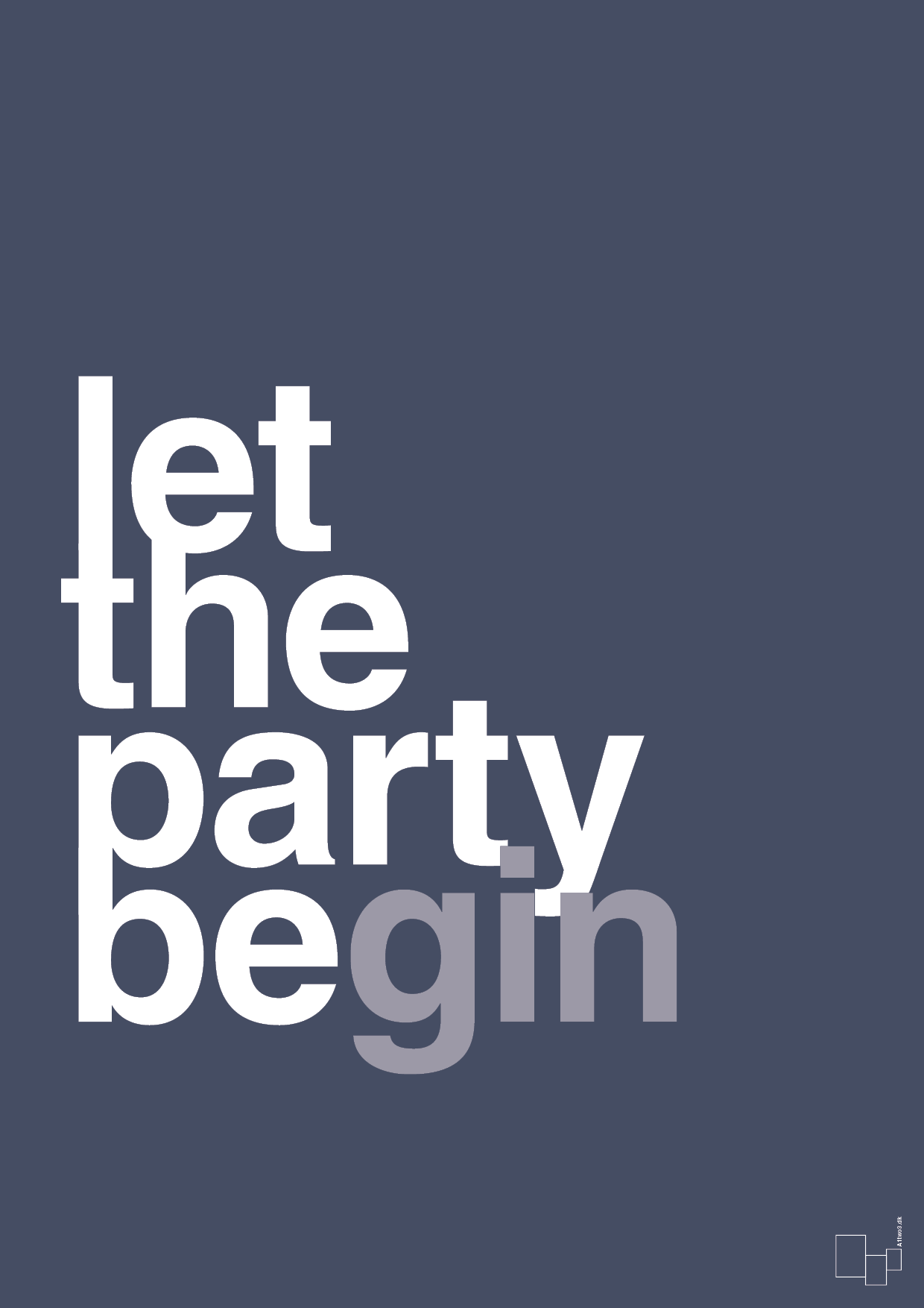 Denne typografiske plakat er skabt til dig, der elsker fest, cocktails og særligt en god gin & tonic. Med det legende ordspil “let the party begin”/“let the party be gin” bliver plakaten et humoristisk statement, der sætter stemningen allerede inden den første drink er hældt op.