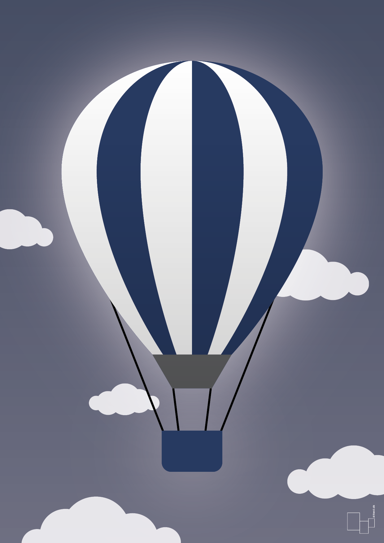 Plakaten kombinerer det nostalgiske udtryk fra klassiske luftballoner med et moderne, minimalistisk design. De rene linjer, de klare kontraster og den enkle komposition giver et tydeligt, grafisk udtryk, der passer perfekt ind i nordisk indretning. Motivet fungerer både som iøjnefaldende blikfang alene og i en billedvæg sammen med andre grafiske plakater.