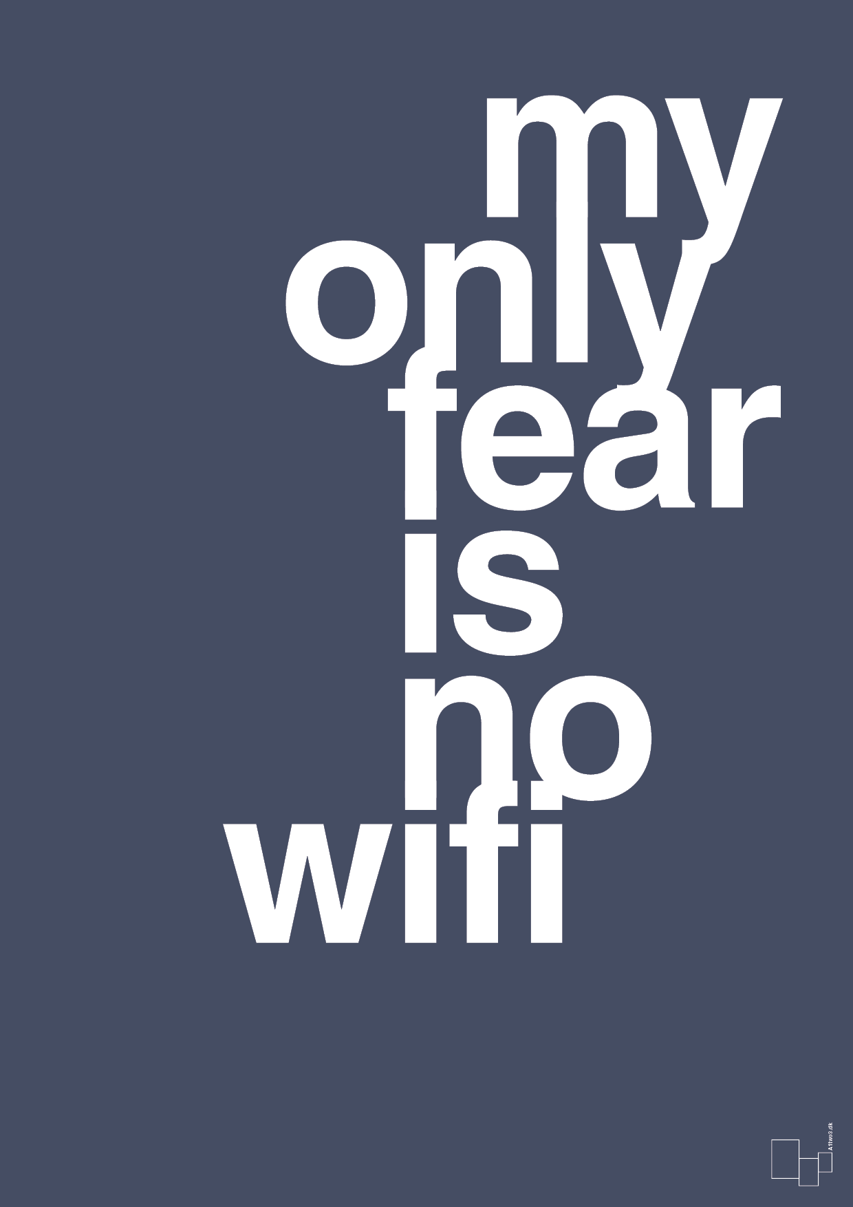 “My only fear is no wifi” – hvis du kender én, der får stress ved udsigten til at være offline, er denne plakat skabt til dem. Det enkle, typografiske design kombinerer skarp humor med stilren, skandinavisk æstetik og bliver hurtigt et favoritstatement på væggen.