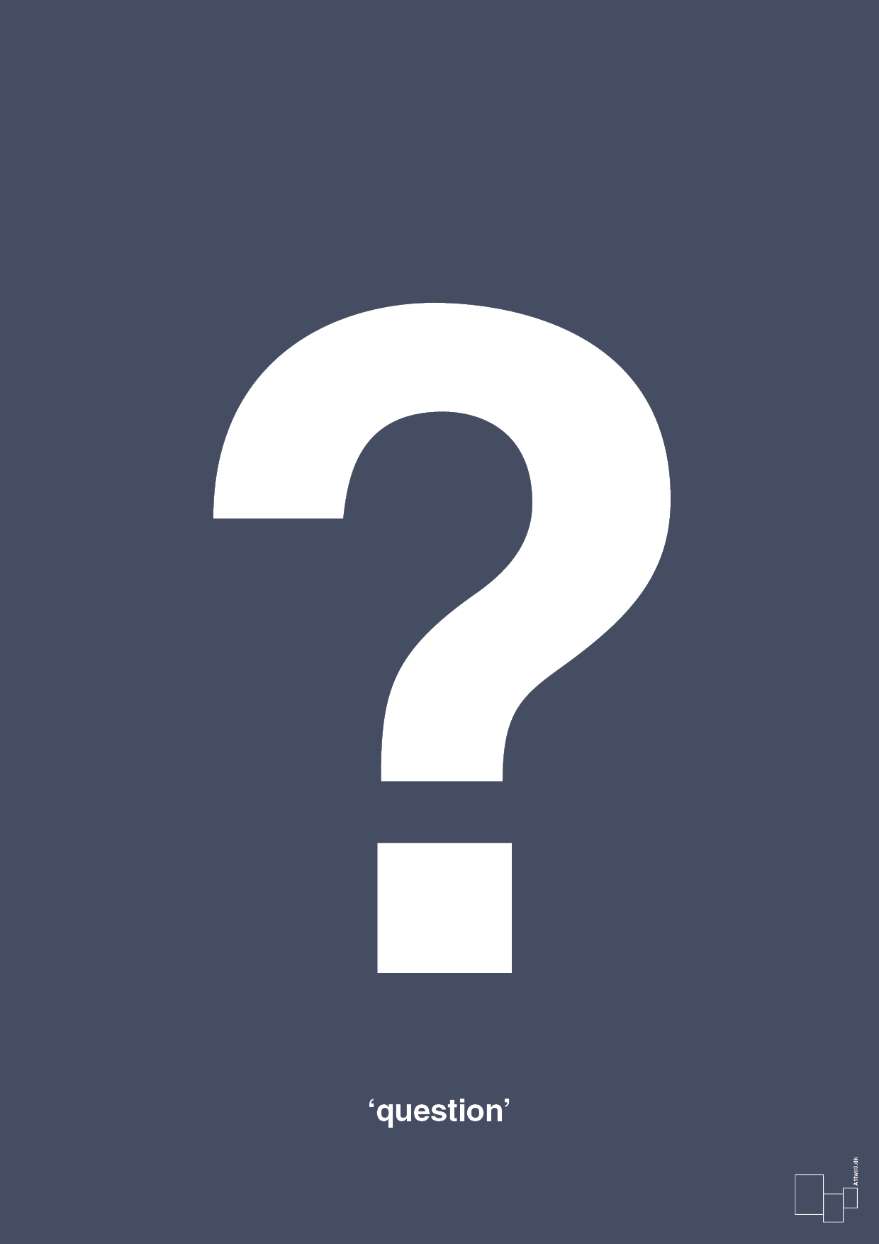 Spørgsmålstegns-plakaten er eksklusivt designet af A1two3 i Danmark og produceret på kraftigt kvalitetsplakatpapir, der giver en skarp gengivelse af de grafiske linjer. Den fås i mindst 13 størrelser, så du nemt kan tilpasse den til alt fra lille kontorhjørne til stor feature-væg – og i hele 25 farvevarianter, så den matcher din personlige indretning og øvrige vægdekoration.