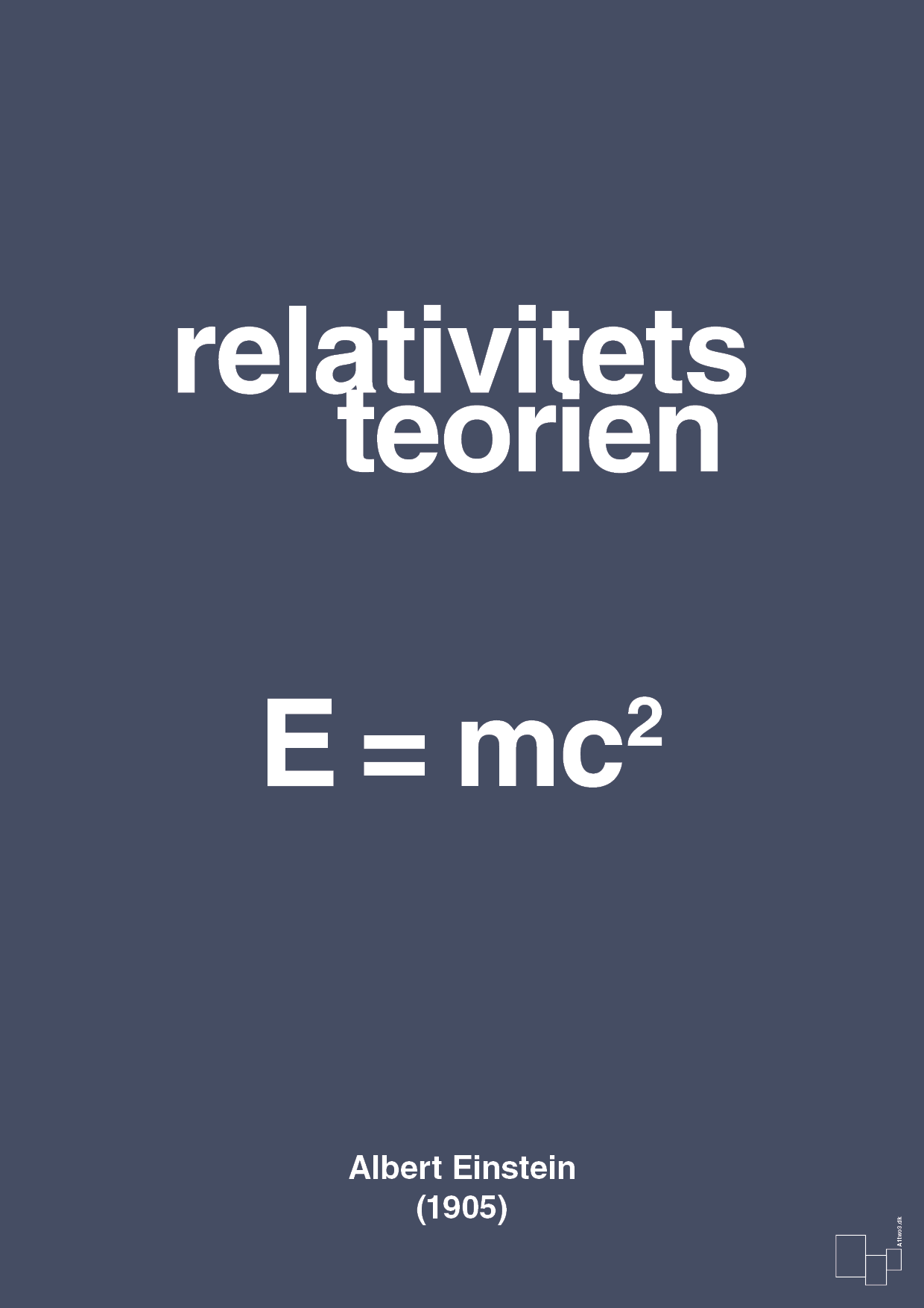 Plakaten er bygget op omkring tydelig, grafisk typografi, hvor ordet “relativitets teorien” står markant i fokus, efterfulgt af selve ligningen og årstallet for teorien. Det giver et enkelt, men stærkt visuelt statement, der passer perfekt til dig, der elsker naturvidenskab, matematik, ingeniørkunst eller bare godt, nordisk design.