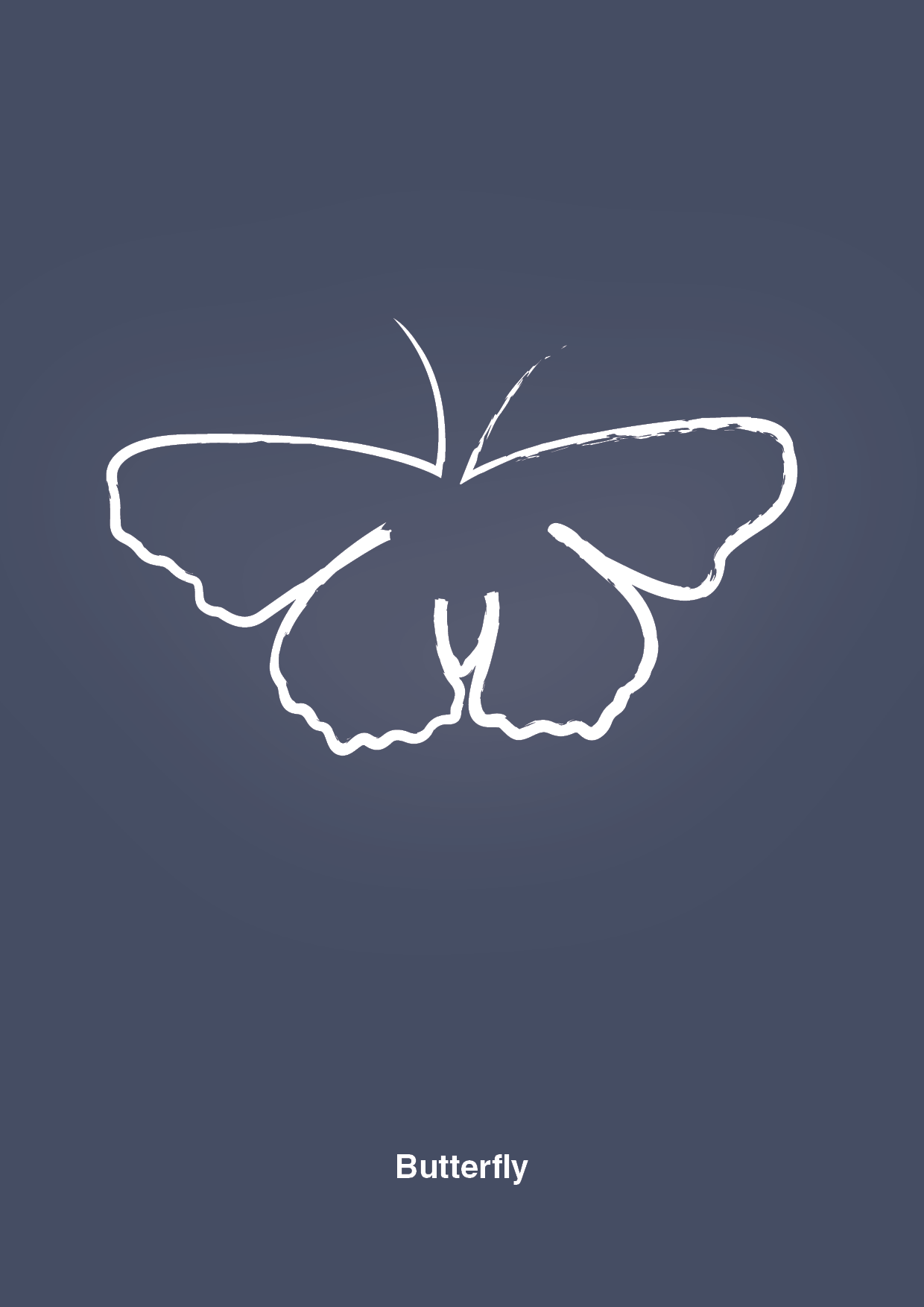 Sommerfuglen er tegnet med et let, håndtegnet udtryk, som skaber bevægelse og energi i rummet – uden at larme visuelt. Nederst står ordet “Butterfly” i en ren typografisk opsætning, der giver plakaten et urbant, grafisk look og gør den nem at kombinere med andre typografiske plakater eller naturmotiver.