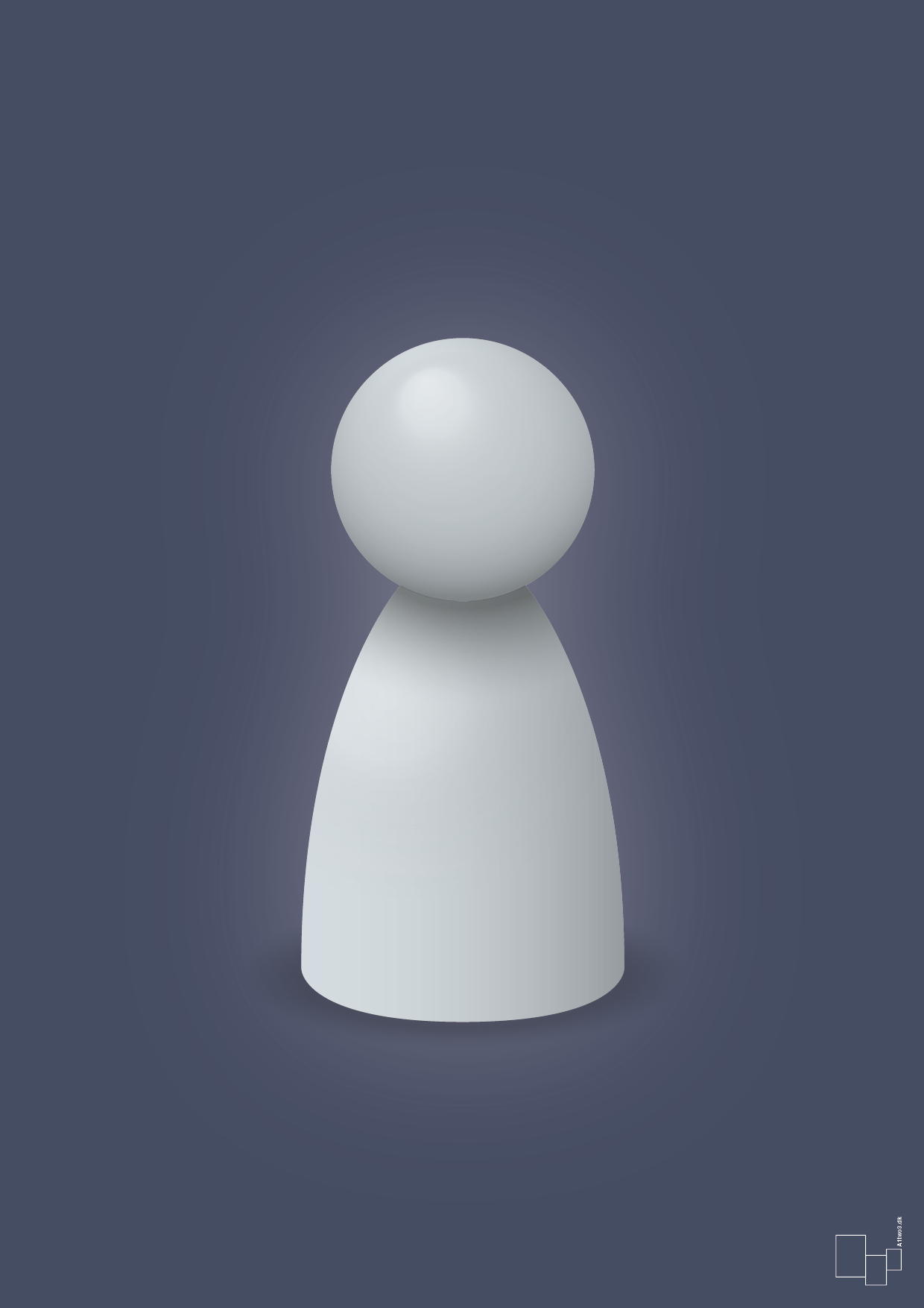 Denne plakat fortolker den klassiske spillebrik i et enkelt, skandinavisk formsprog, hvor bløde kurver, realistiske lysreflekser og en rolig baggrund skaber et grafisk motiv med masser af karakter. Spillebrikken står alene i centrum og giver et stilrent, nærmest skulpturelt udtryk, der gør plakaten oplagt til dig, der elsker brætspil, grafisk design og nordisk minimalisme.