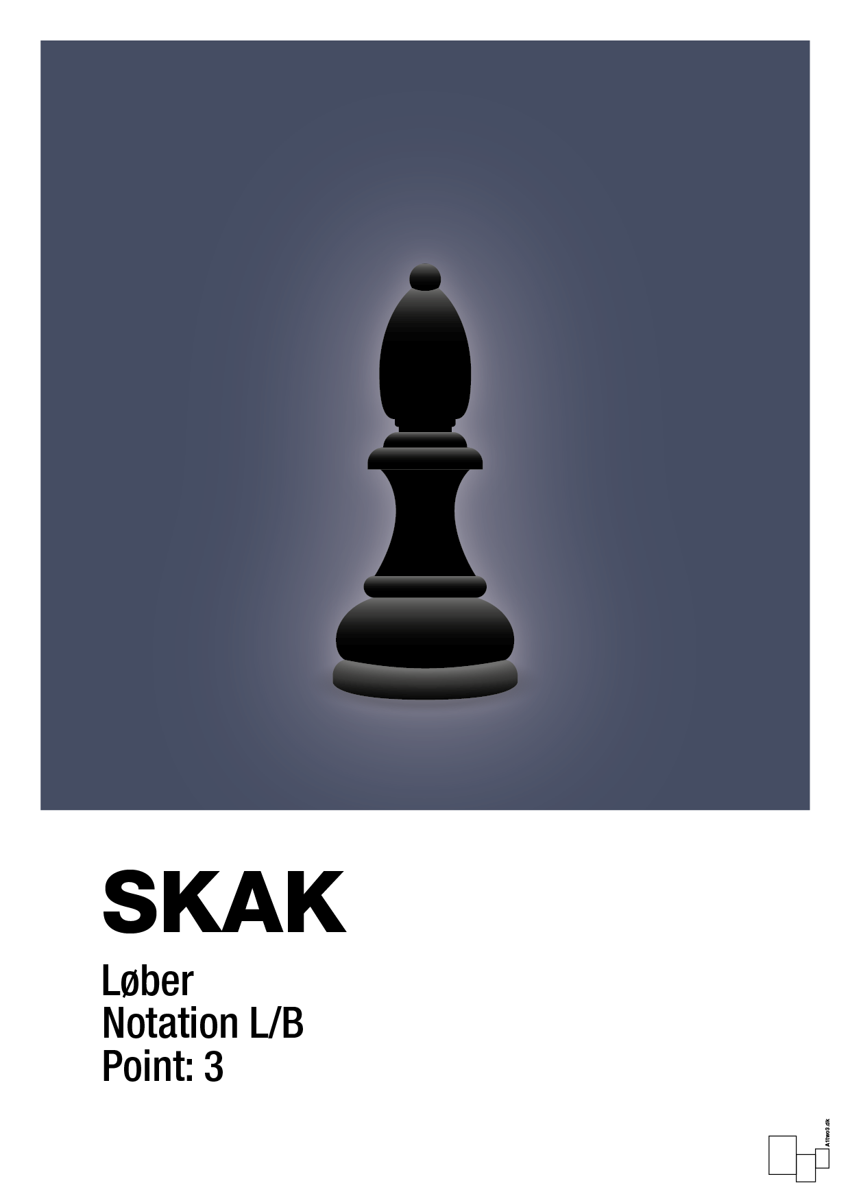 Denne stilrene skak plakat hylder en af spillets mest elegante brikker: løberen. Den ikoniske silhuet står skarpt i centrum, omgivet af en rolig, grafisk baggrund, der får den sorte spillebrik til at fremstå både kraftfuld og minimalistisk. Under motivet finder du tydelig typografi med titel, briktype, notation og point – perfekt til den, der elsker både skak og design.