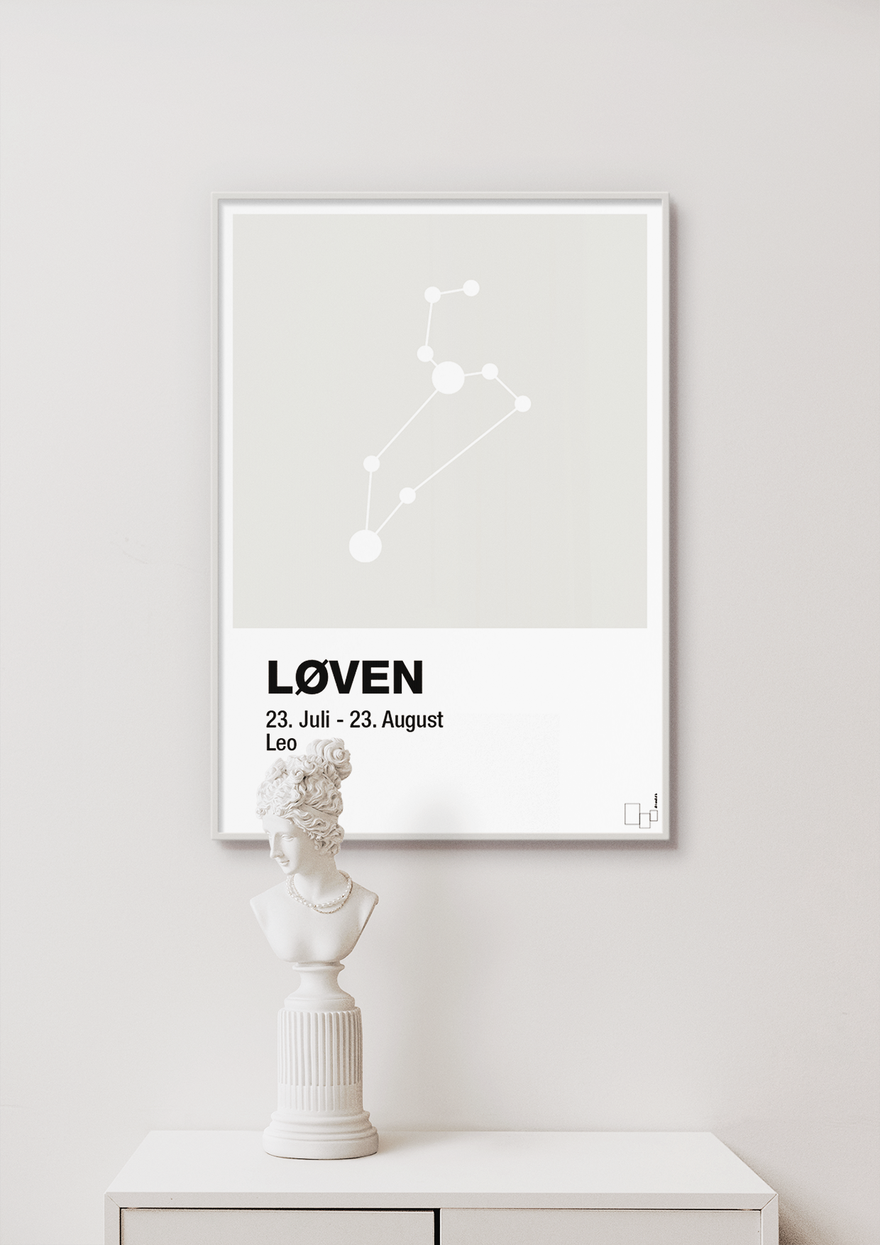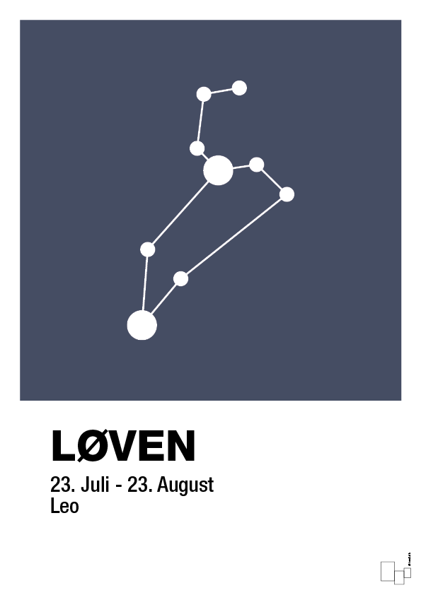 Plakaten er oplagt til dig, der er født i stjernetegnet løven – eller som vil give en personlig, astrologisk gave til fødselsdag, barnedåb, konfirmation eller indflytning. Det stringente, skandinaviske design gør den samtidig perfekt til dig, der elsker horoskoper og stjernetegn, men foretrækker et moderne og grafisk udtryk frem for klassiske, romantiske zodiakmotiver.