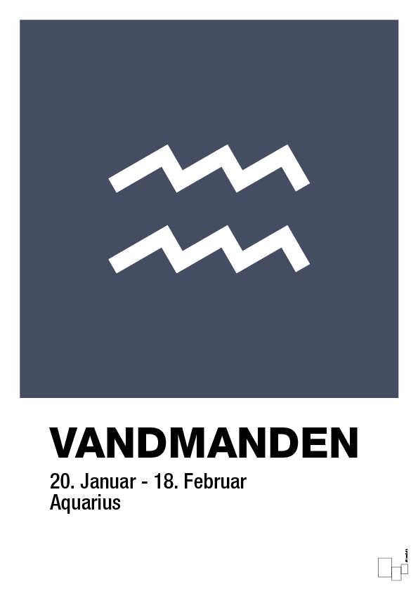 Denne stilrene vandmanden plakat fortolker stjernetegnets klassiske stjernesymbol i et enkelt, grafisk udtryk. De to bølgende linjer står skarpt og tydeligt i centrum og giver et moderne take på astrologi, der passer perfekt ind i et nordisk, minimalistisk hjem. Under symbolet står “VANDMANDEN” med tydelig typografi samt datoer og det engelske navn “Aquarius”, så både formsprog og betydning går op i en højere enhed.