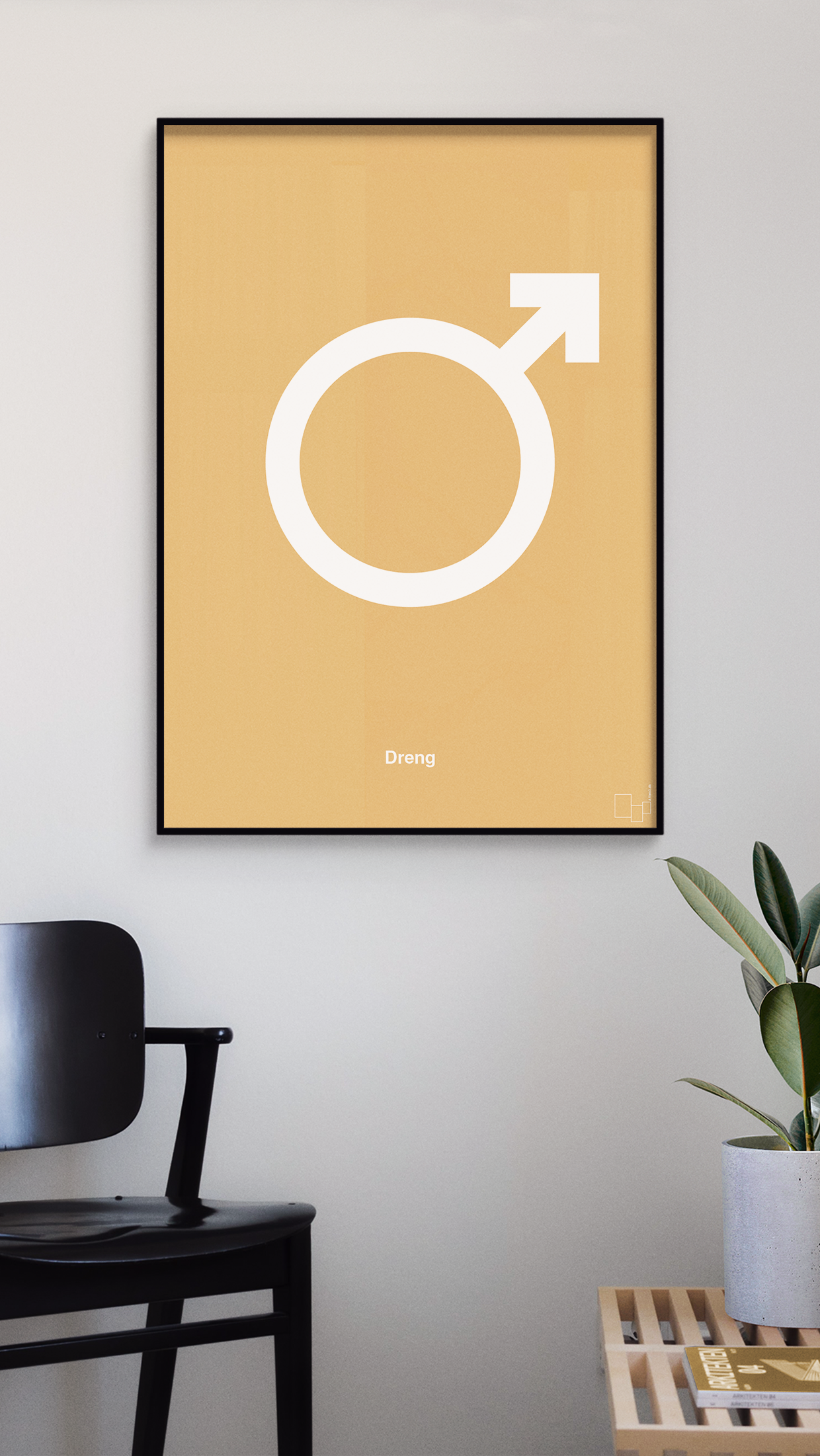 Kombinér den eventuelt med den tilsvarende plakat med symbol for pige for et gennemført og grafisk udtryk i hjemmet eller i fælles områder.