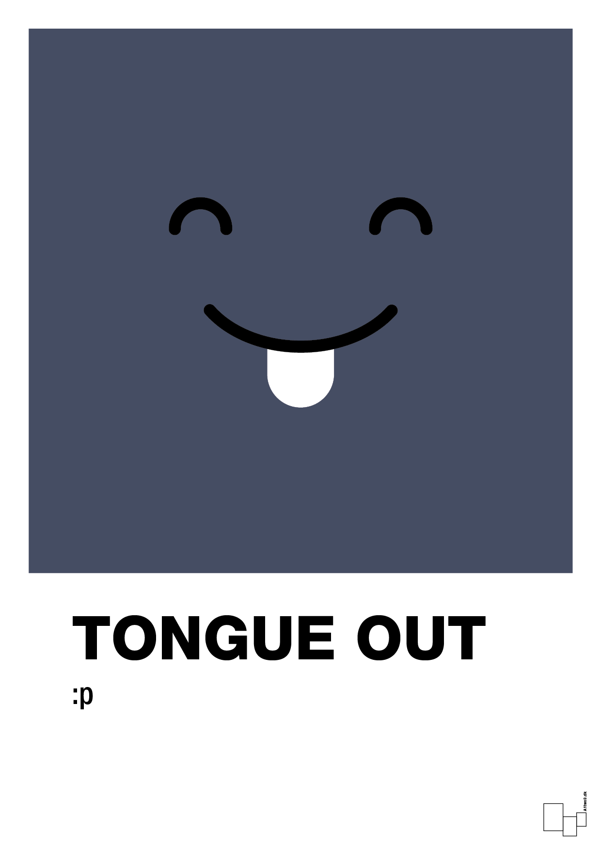 Plakaten er bygget op som en tydelig, firkantet flade med et enkelt, stilrent ansigt og den karakteristiske typografiske tekst “TONGUE OUT” og “:p” under motivet. Det enkle formsprog og de skarpe kontraster gør den oplagt som moderne vægkunst i hjem, hvor du ønsker et urbant og skandinavisk udtryk med et humoristisk twist.