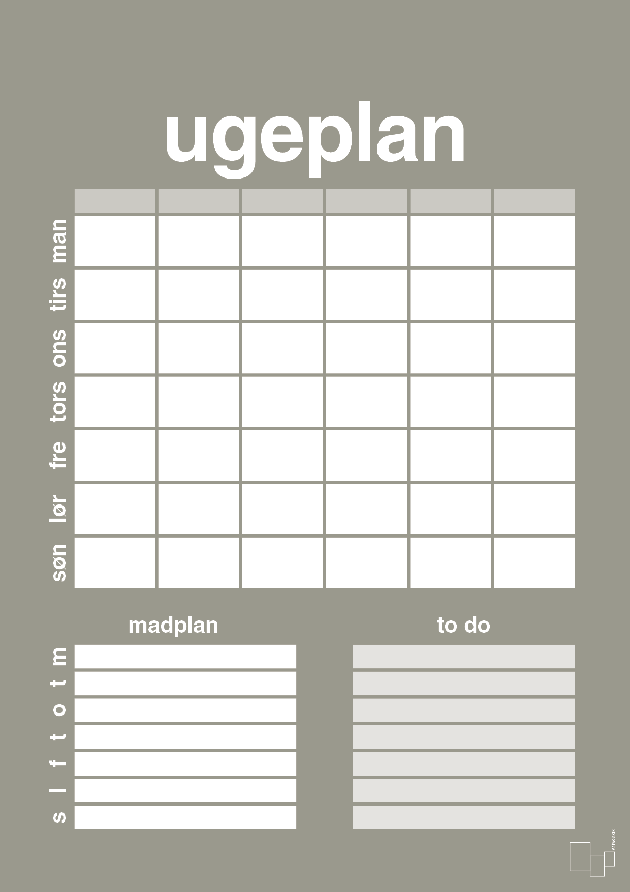 plakat: ugeplan med to-do liste til 6 personer - battleship gray
