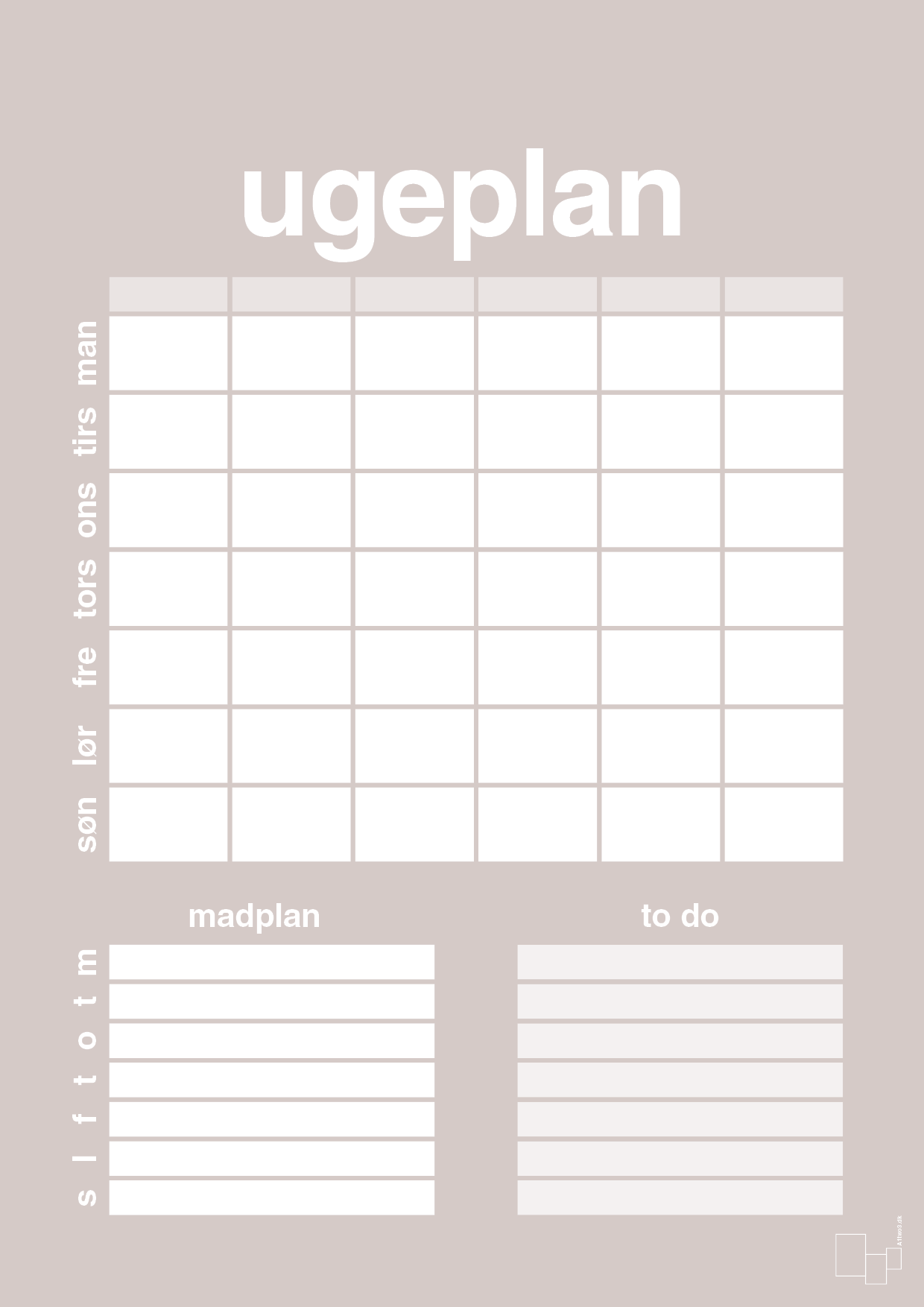 plakat: ugeplan med to-do liste til 6 personer - broken beige