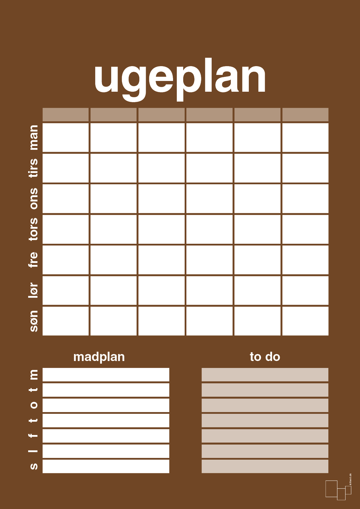 plakat: ugeplan med to-do liste til 6 personer - dark brown