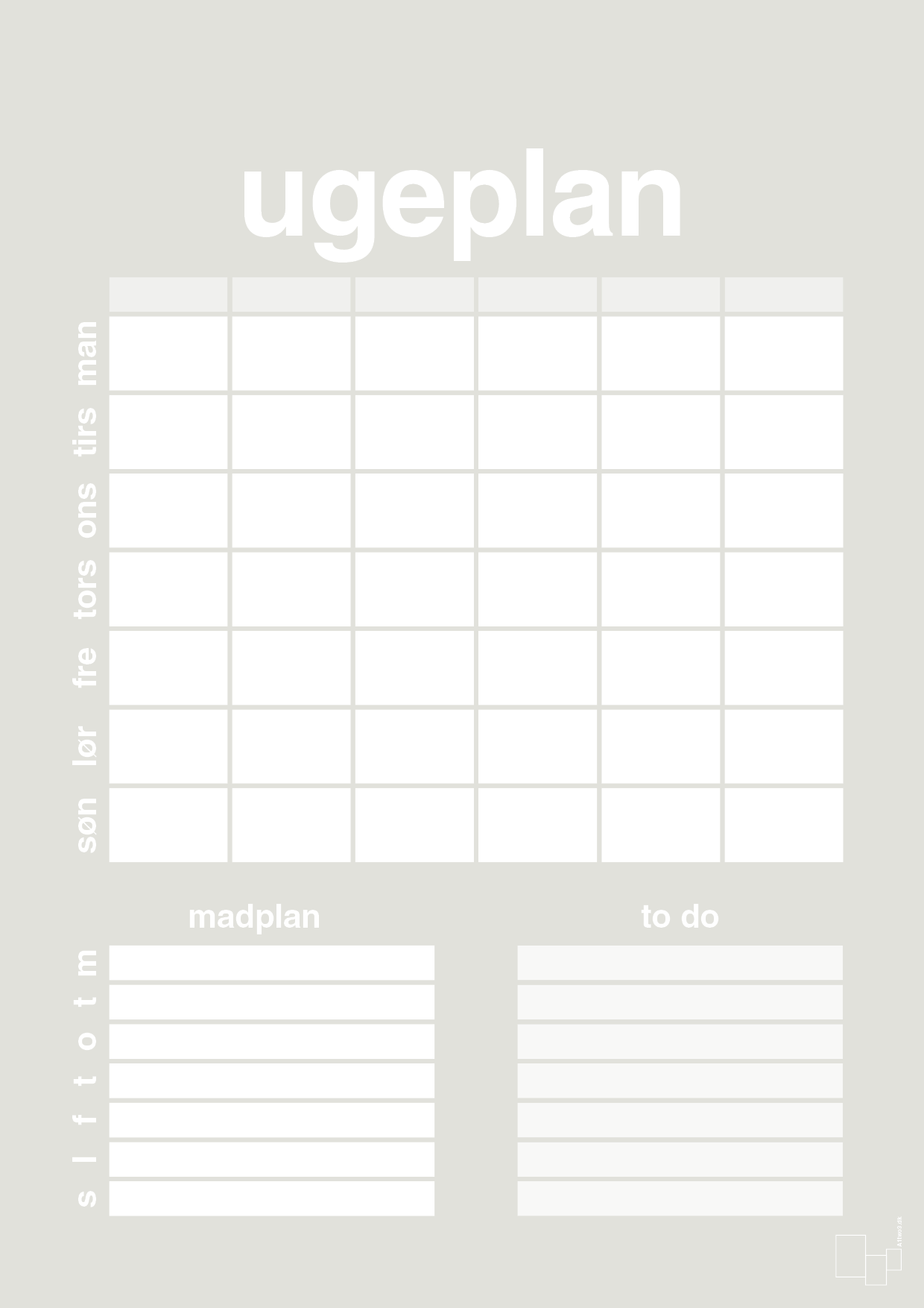 Smart plakat med ugeplan, madplan og to-do liste til 6 personer. Sæt plakaten i en ramme med glas front og skriv på glasset med en glastusch som kan tørres af.
